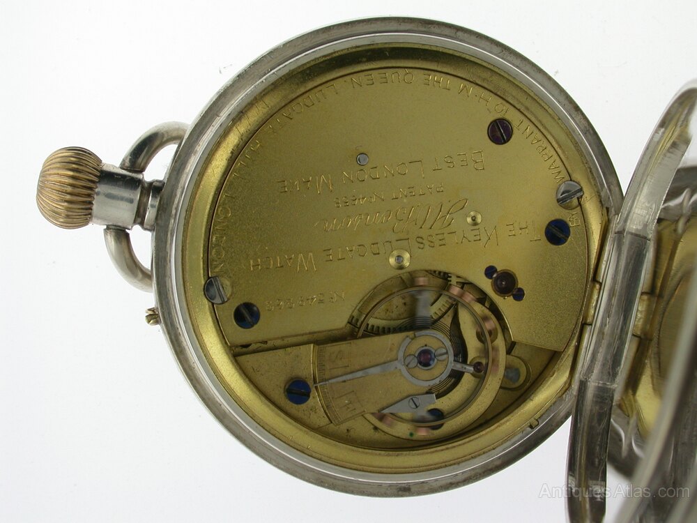 Case: The watch is lying in a silver open faced case. The back of the case is slightly scratched. The inside of the case and the inside of the plain silver cuvette are numbered: 86x, are hallmarked for London 1890 and have the case maker’s initials: J.W.B. What makes this watch exclusive is that the case maker’s initials are J.W.B. which stands for J.W. Benson. It is very exclusive to have a watch with the case and watch maker the same person.