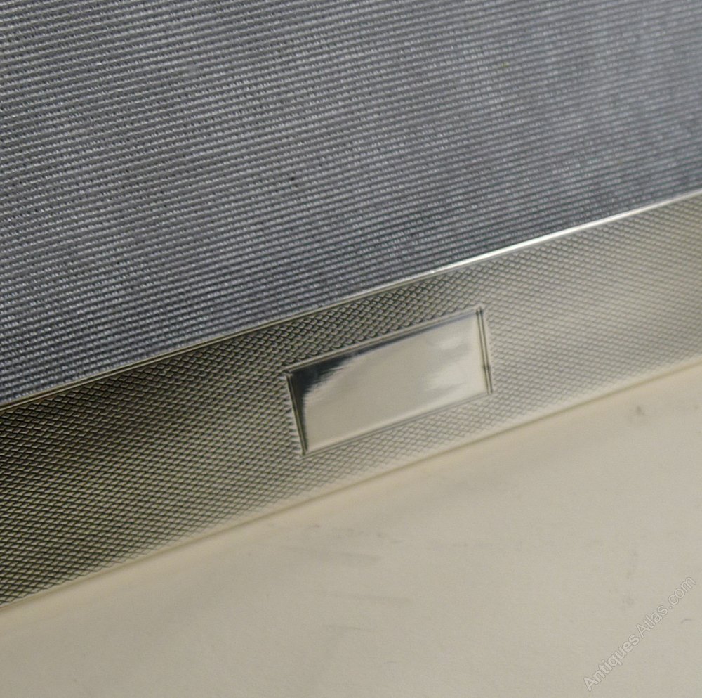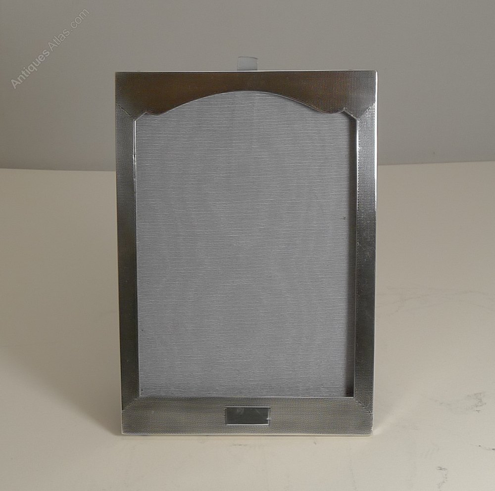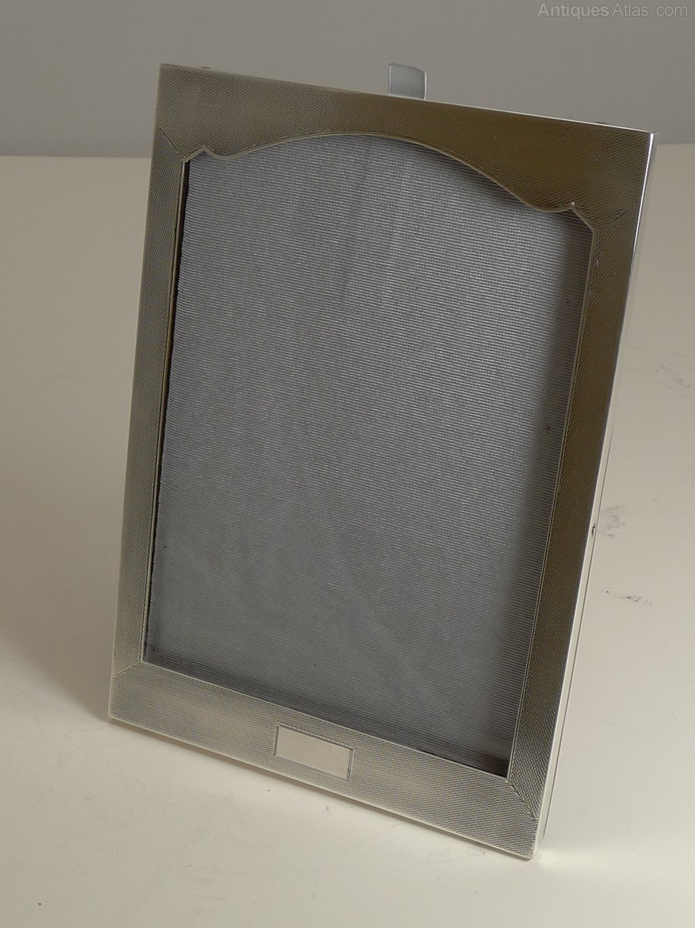 A very smart vintage English picture frame, Art Deco in style with an all-over engine turned decoration incorporating a rectangular vacant cartouche at the bottom.