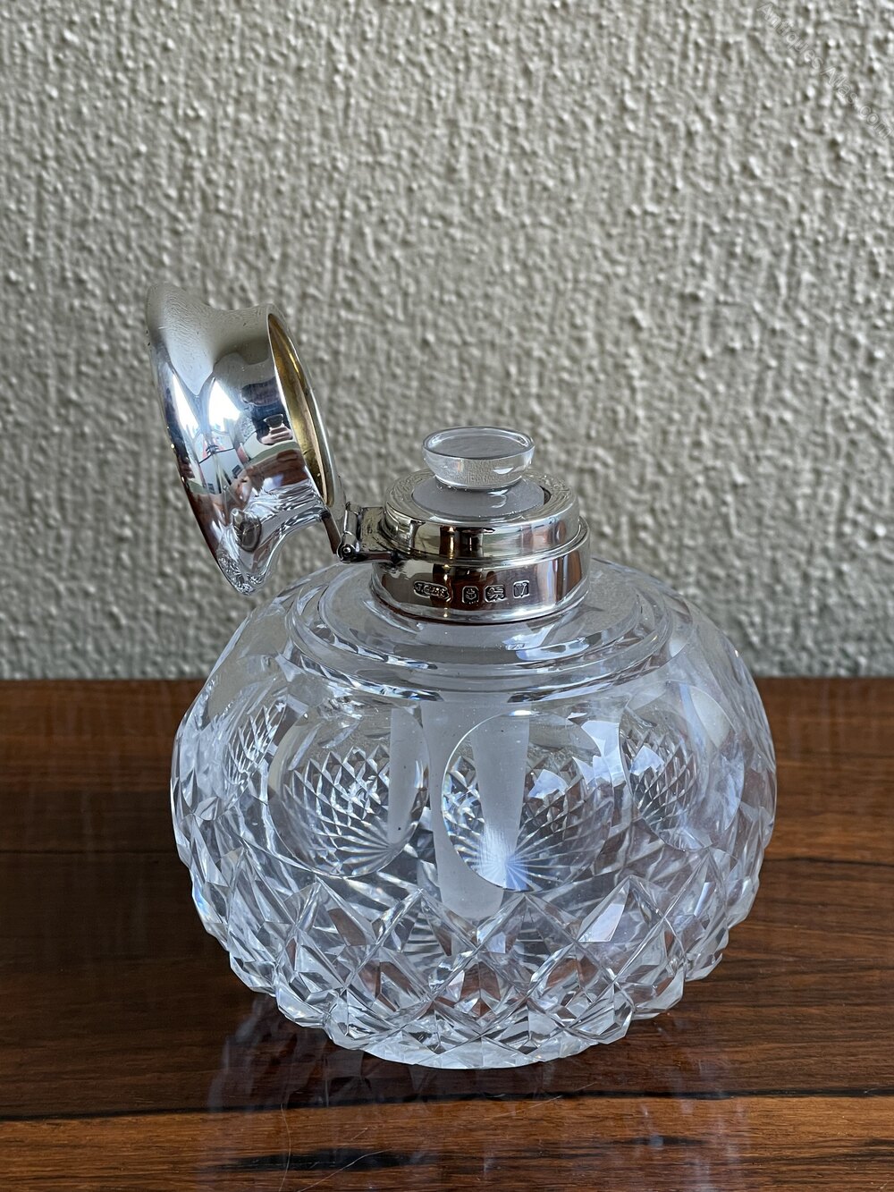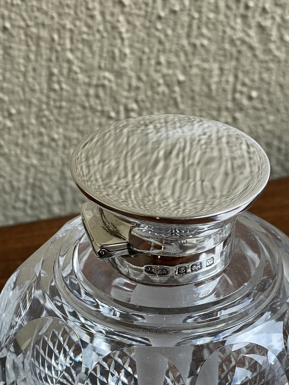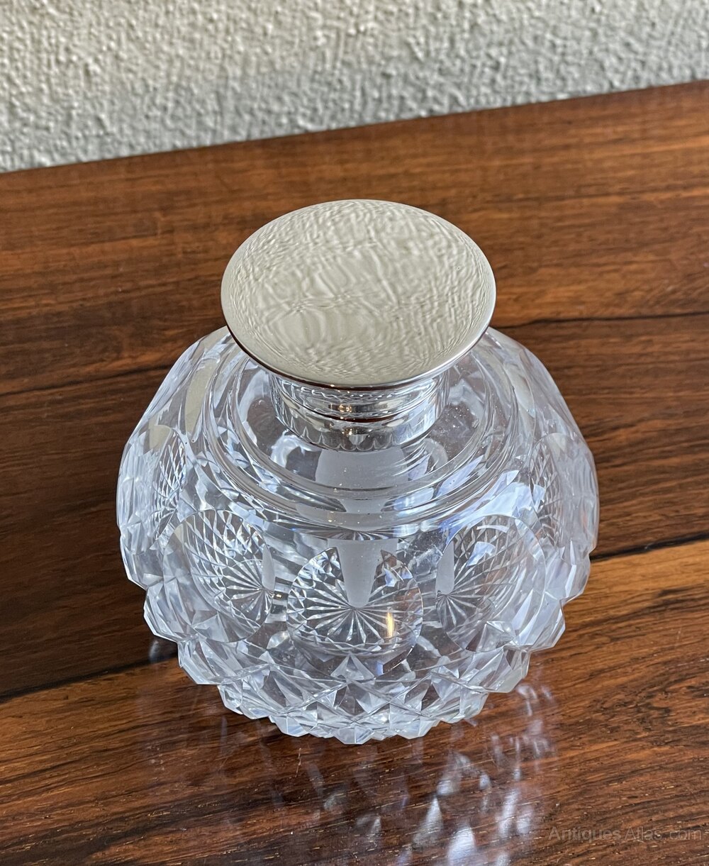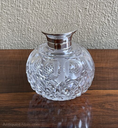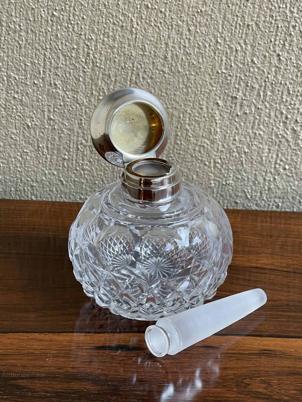 A wonderful George V solid silver mounted cut glass scent bottle with most unusual and original ‘dabber’ stopper for applying the perfume. Hallmarked Birmingham 1920 by much sought after maker John Grinsell & Sons.