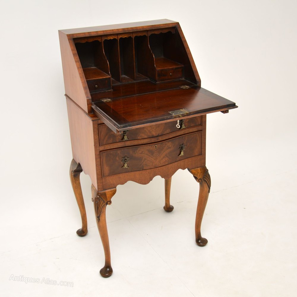 Small Antique Edwardian Mahogany Bureau on Legs