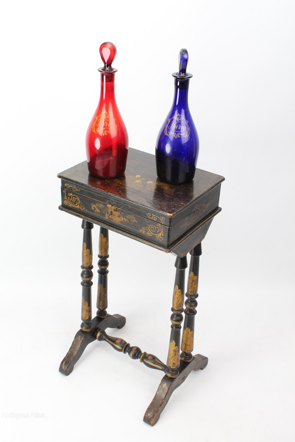 Small Antique French Chinoiserie Sewing Lamp Table