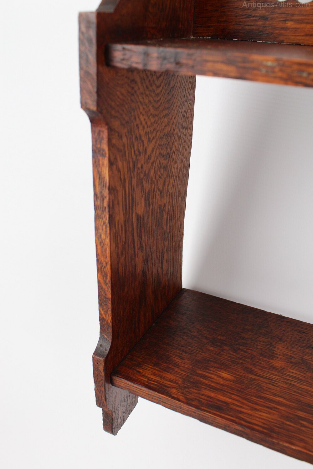Small Edwardian Arts Crafts Oak Wall Shelf Bookshelf