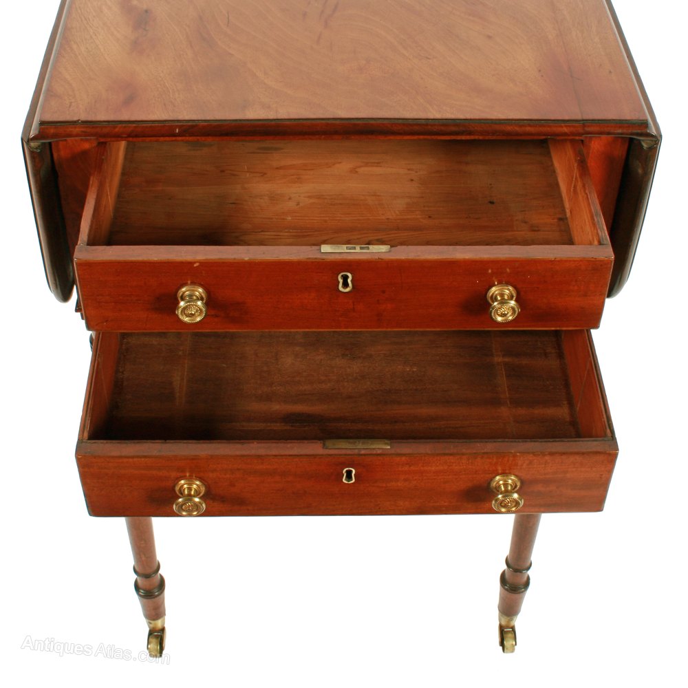 This quality table has two drawers that are cedar wood lined and have brass knob handles.