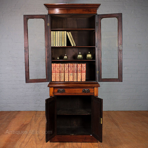 Attractive late Victorian bookcase c.1895. Of unusual proportions, measuring just 29½” in width and 80″ in height. Retaining great original colour and finish, with later handles. Cleaned and polished in our workshops, key supplied.