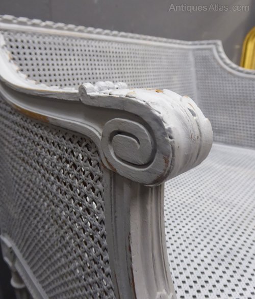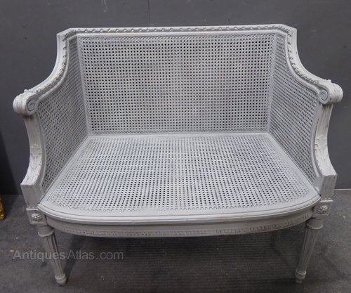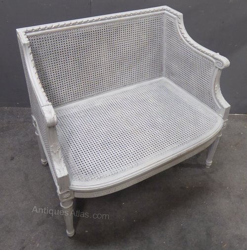 Small painted antique French cane sofa