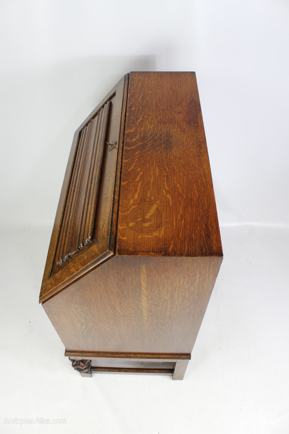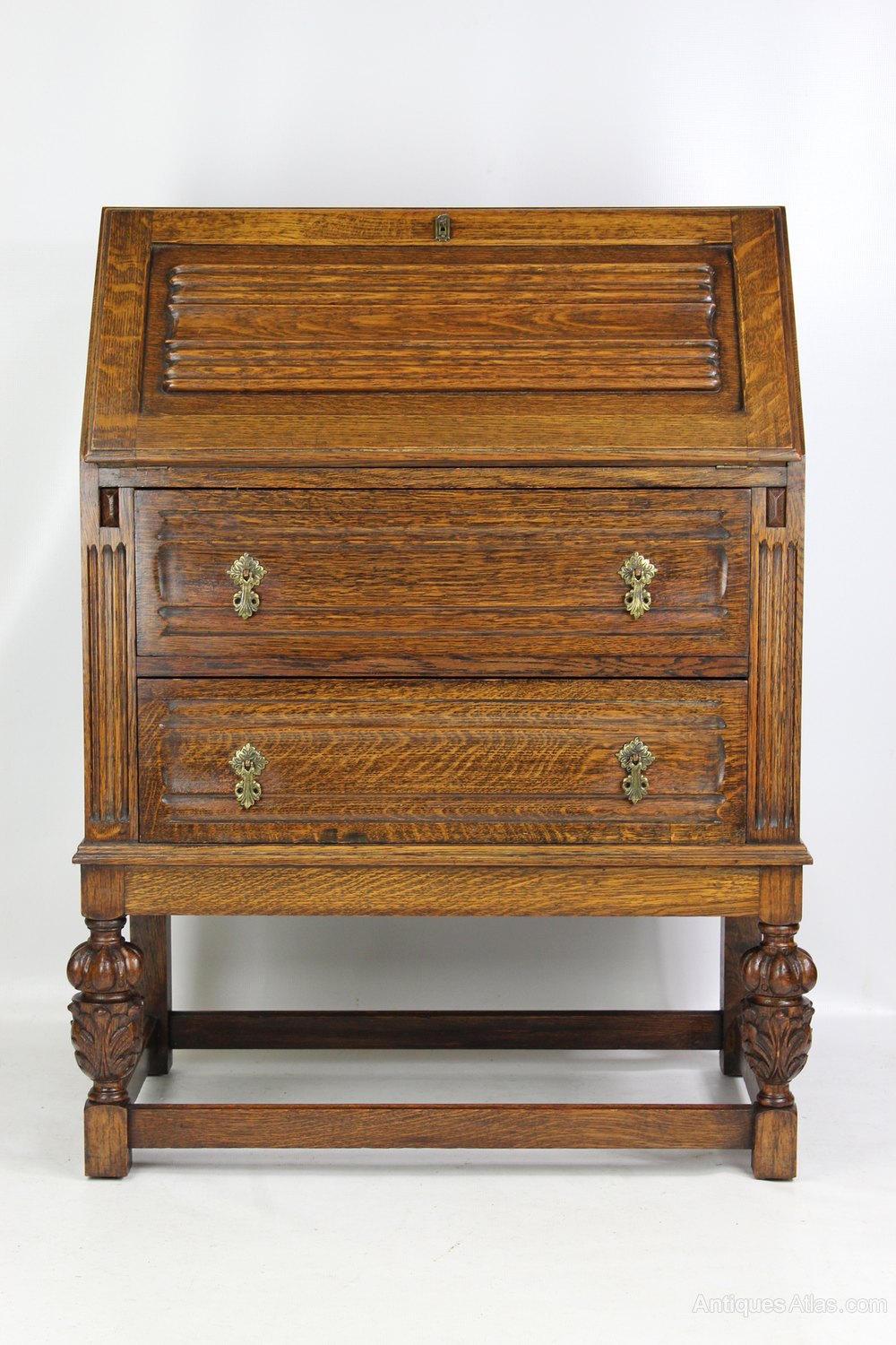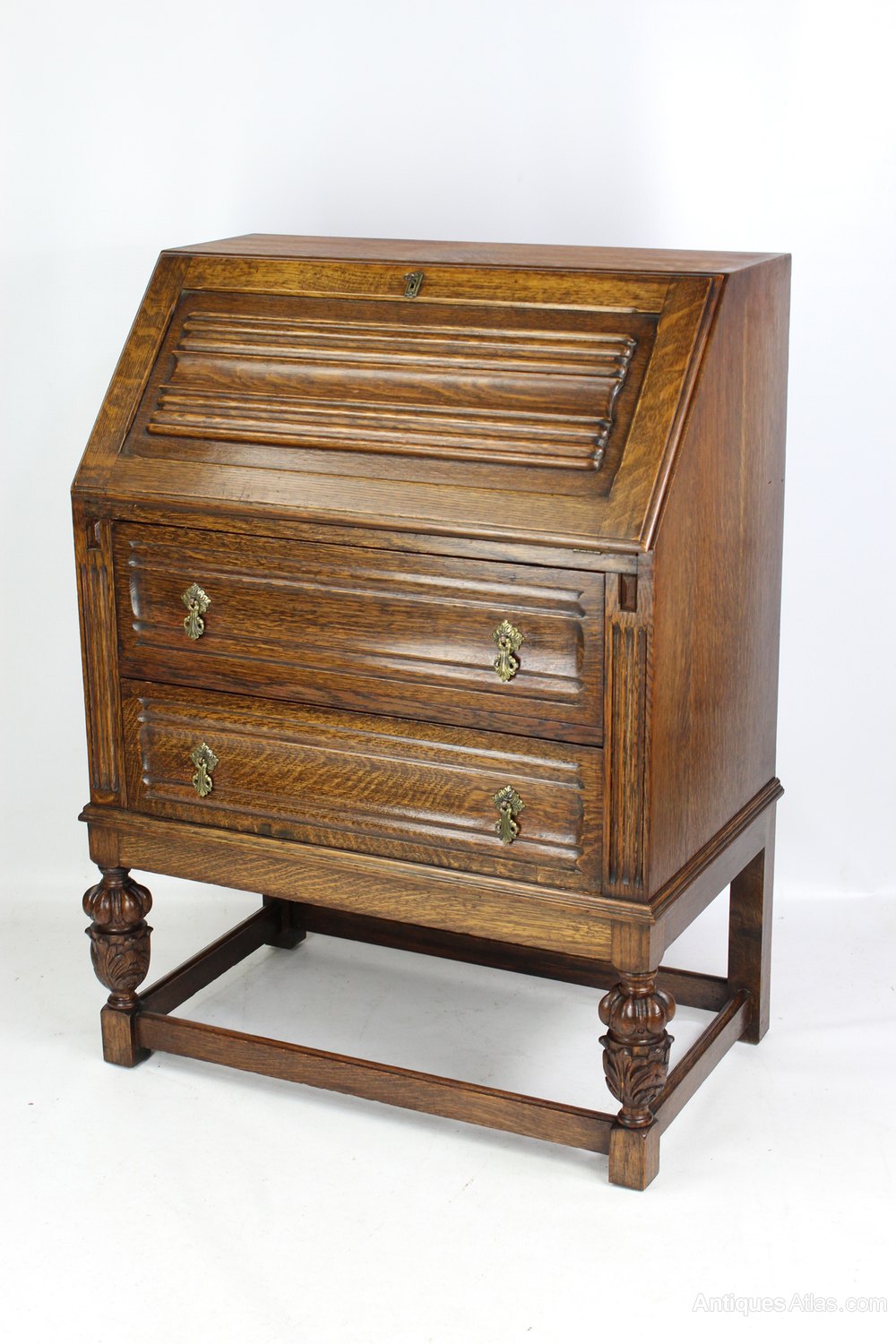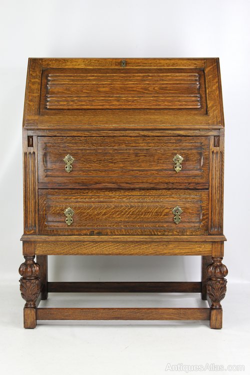 Small Vintage Carved Oak Bureau Desk