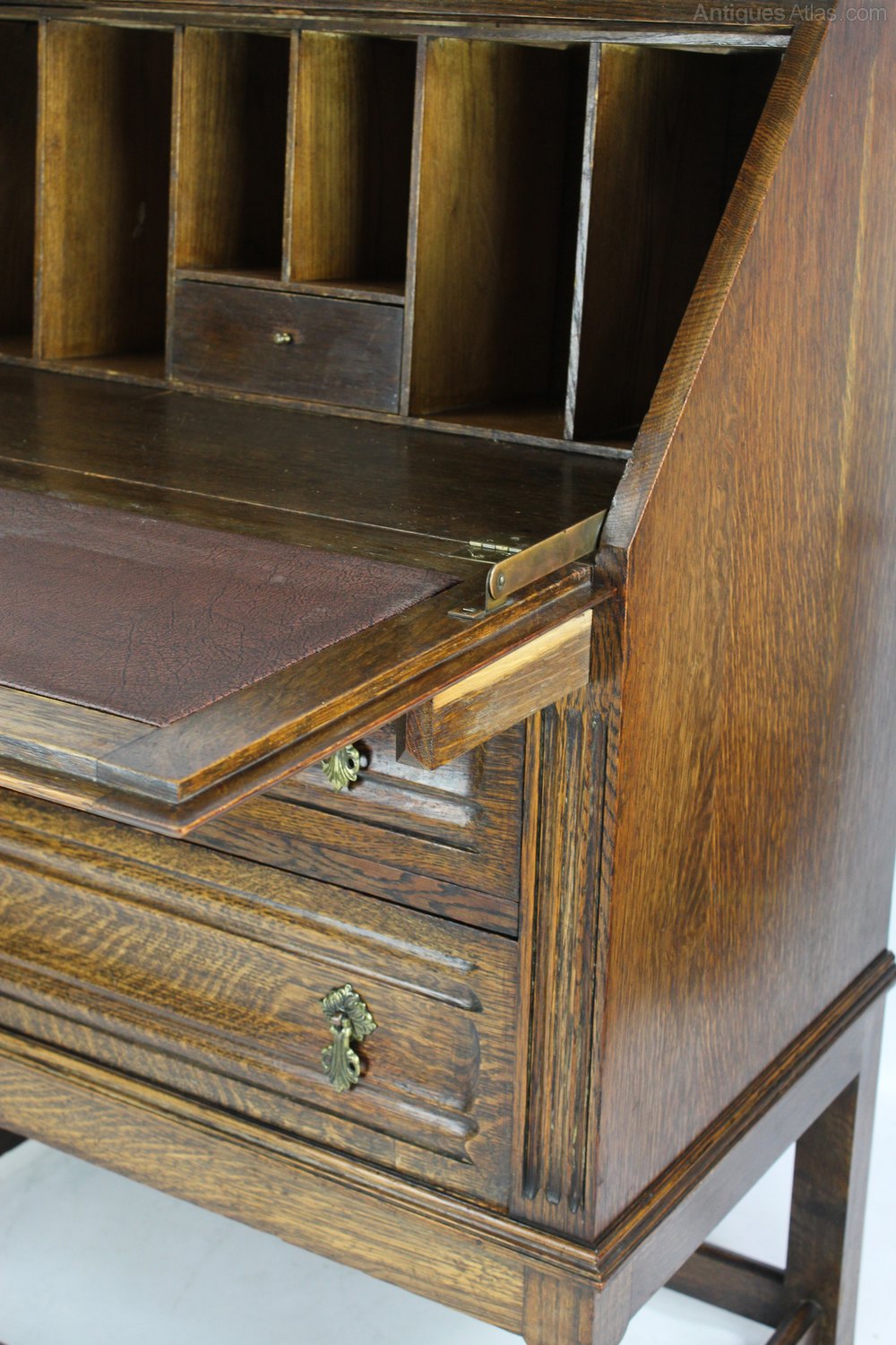 Arts & Crafts Quartered Oak Bookcase Bureau c1900