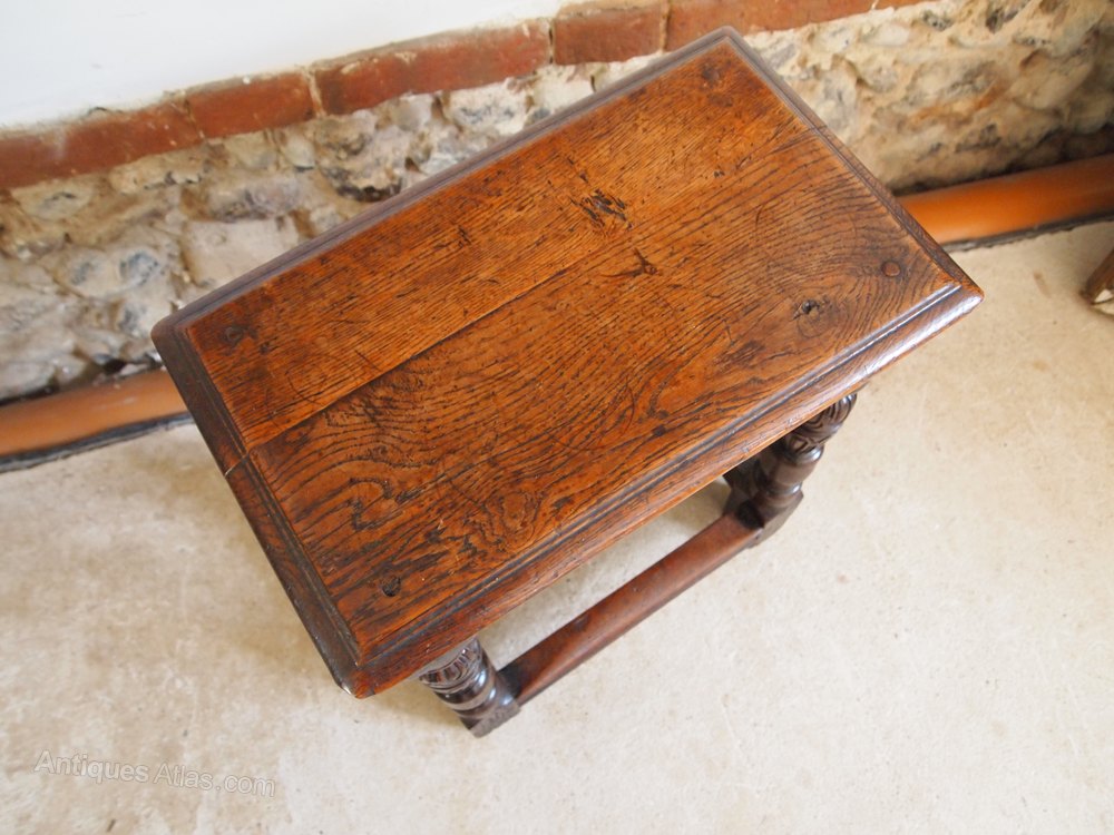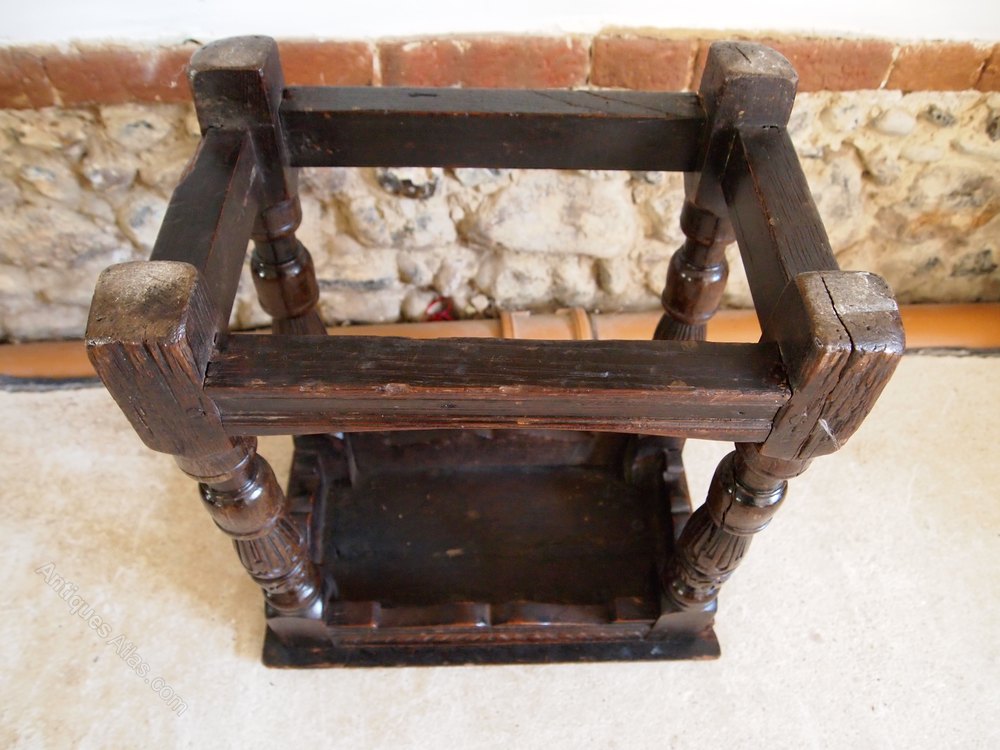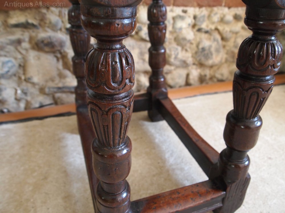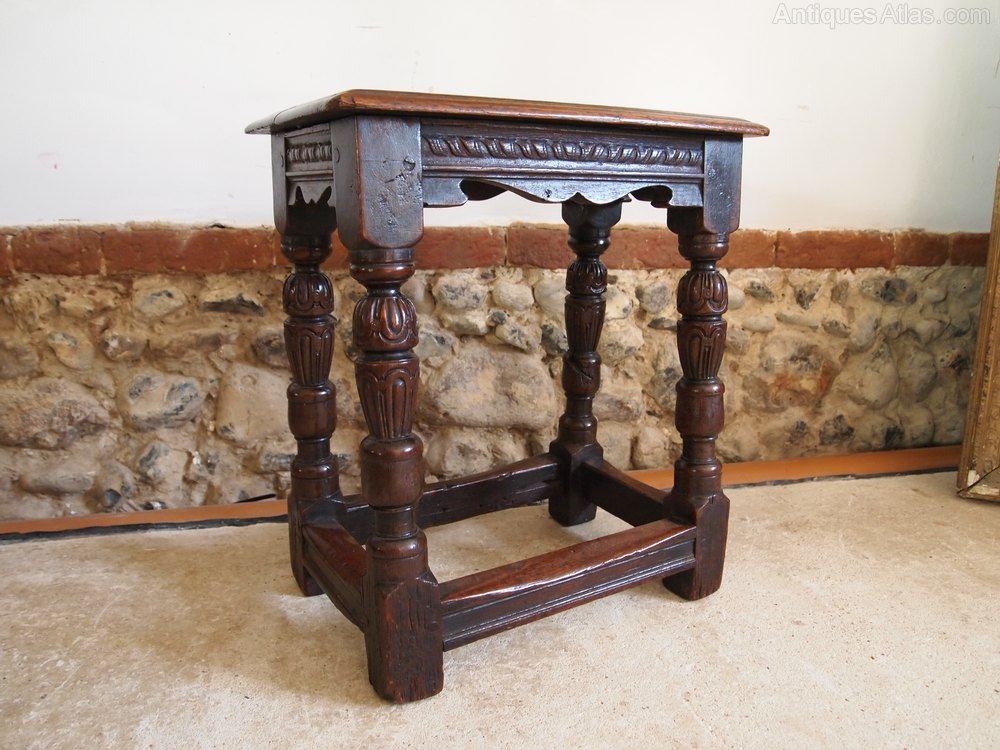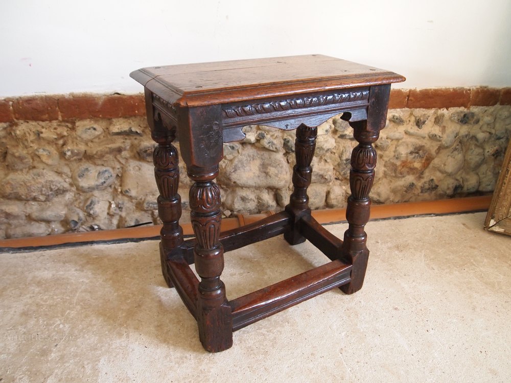 Here we have a wonderful Victorian Oak joint stool in the Elizabethan manner c1880. As you can see the stool has fantastic colour and patina. The stool is of pegged mortice and tenon construction throughout. The top has four pegs into the legs which as you will know are slightly raised from the surface as they are end grain and the top is not. There is a stunning frieze of gadrooned carving and decorative split moulding. The legs are beautifully carved with turnings and cup and covers. The legs are joined by stretchers all round with a decrative moulding to the outside. A super Victorian example in great retail condition ready for your home. The dimensions are approx 48 cm high 46 cm wide 28 cm deep.