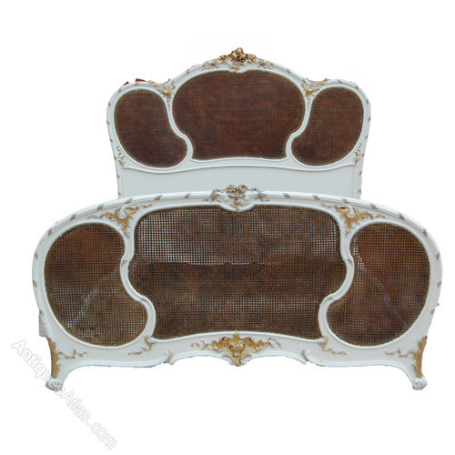 A very fine quality French late C19th paint & gilt cane louis xv style 5' kingsize bed