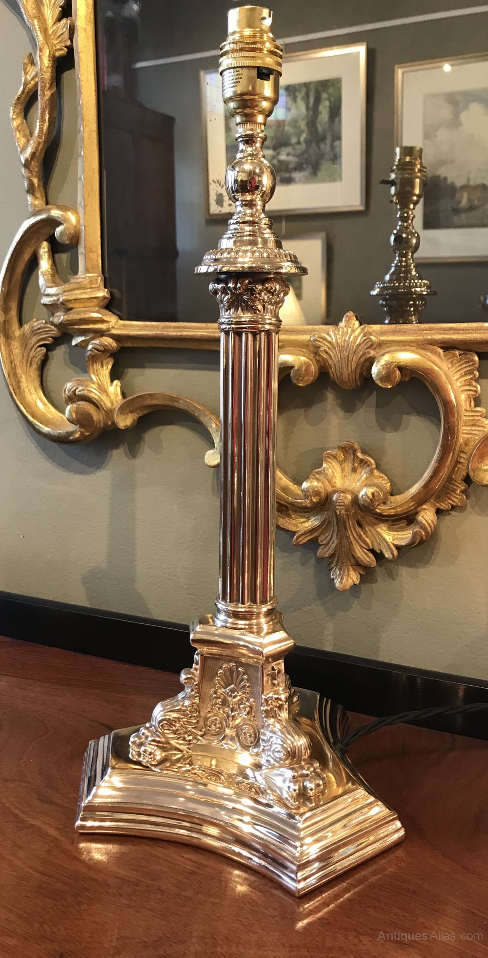Edwardian Slim and Tall Corinthian Column Table Lamp