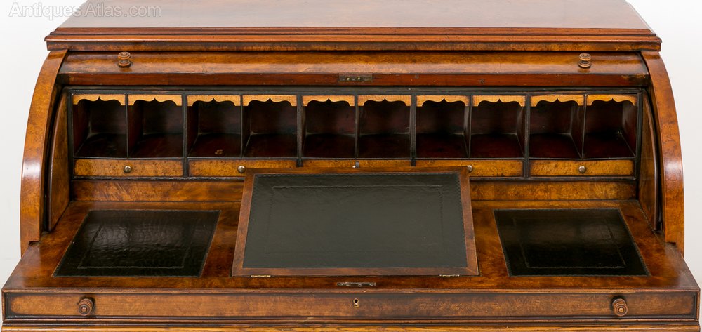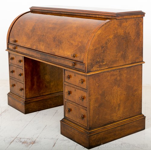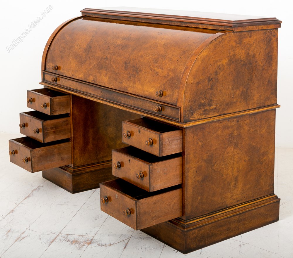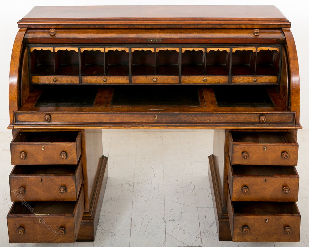 Antique Freestanding Mahogany Inlaid Cylinder Desk