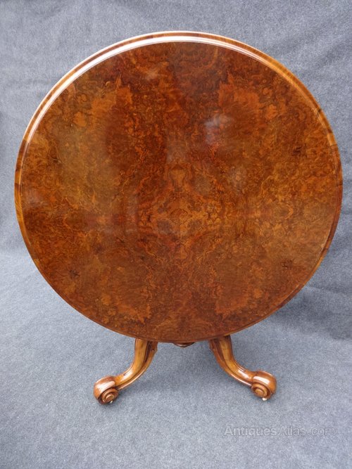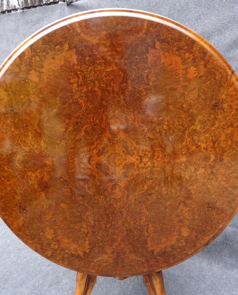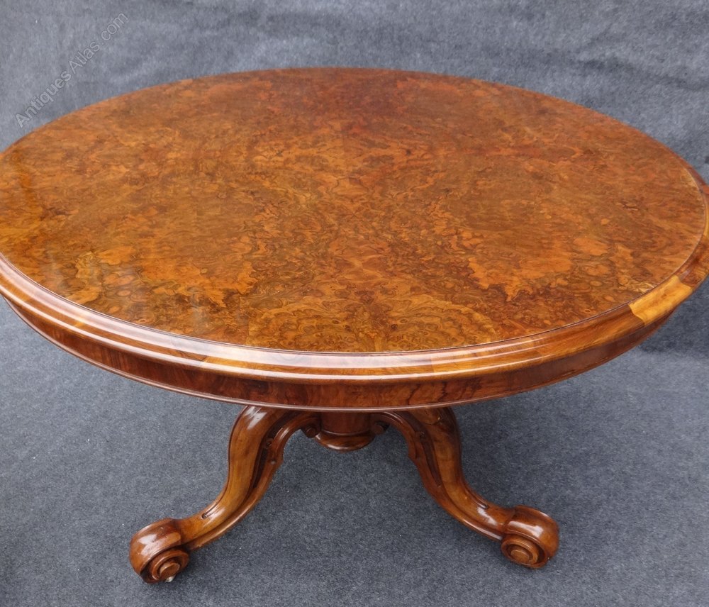 Excellent quality burr walnut center table, repolished top, in excellent condition.
