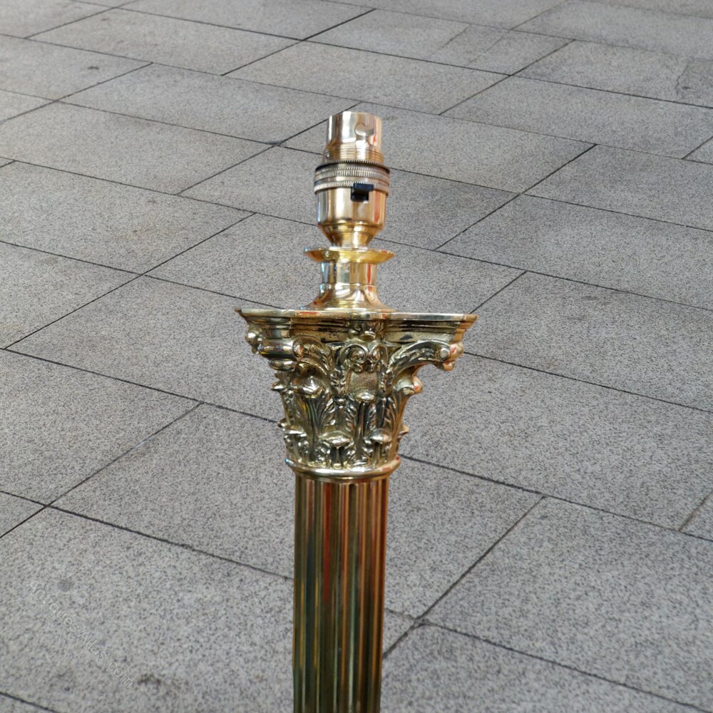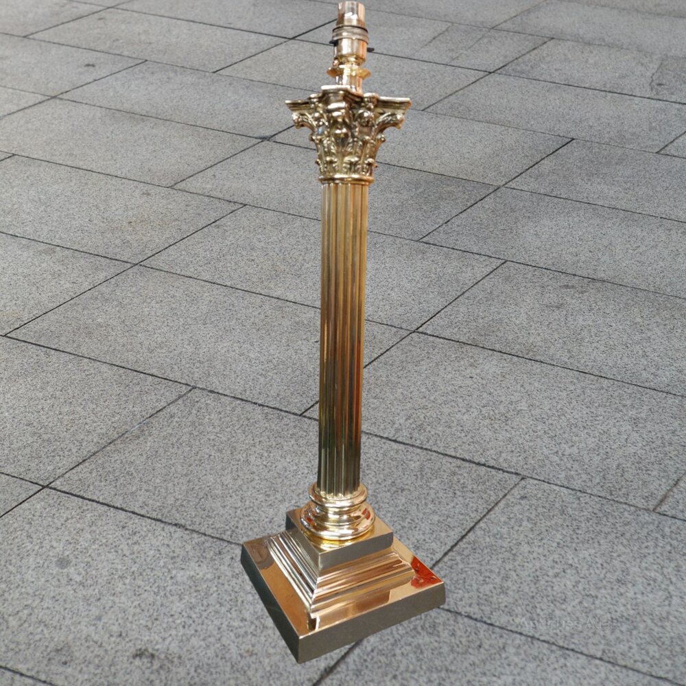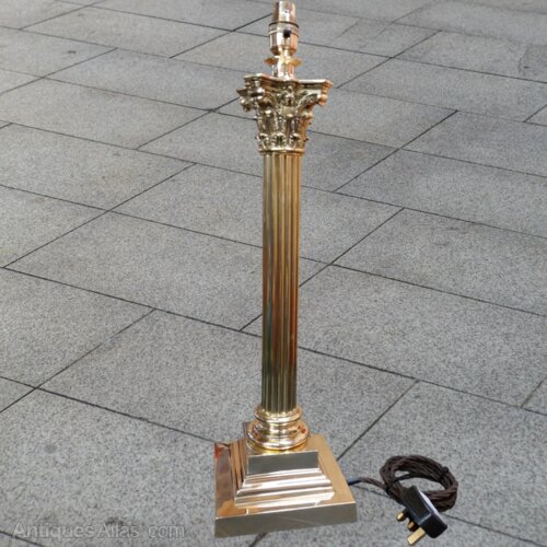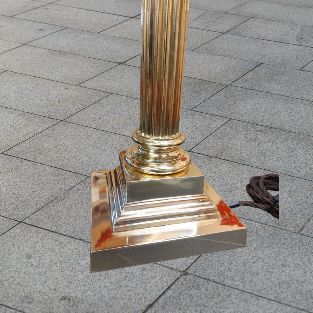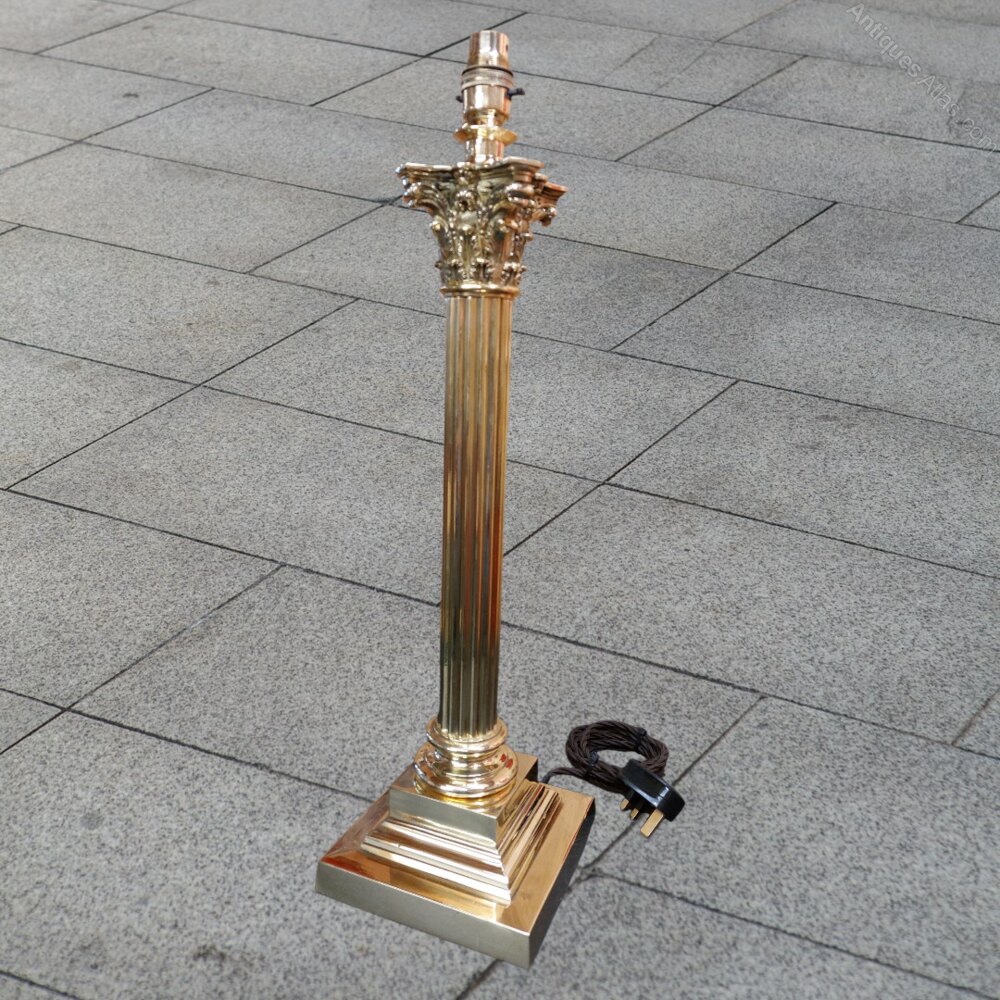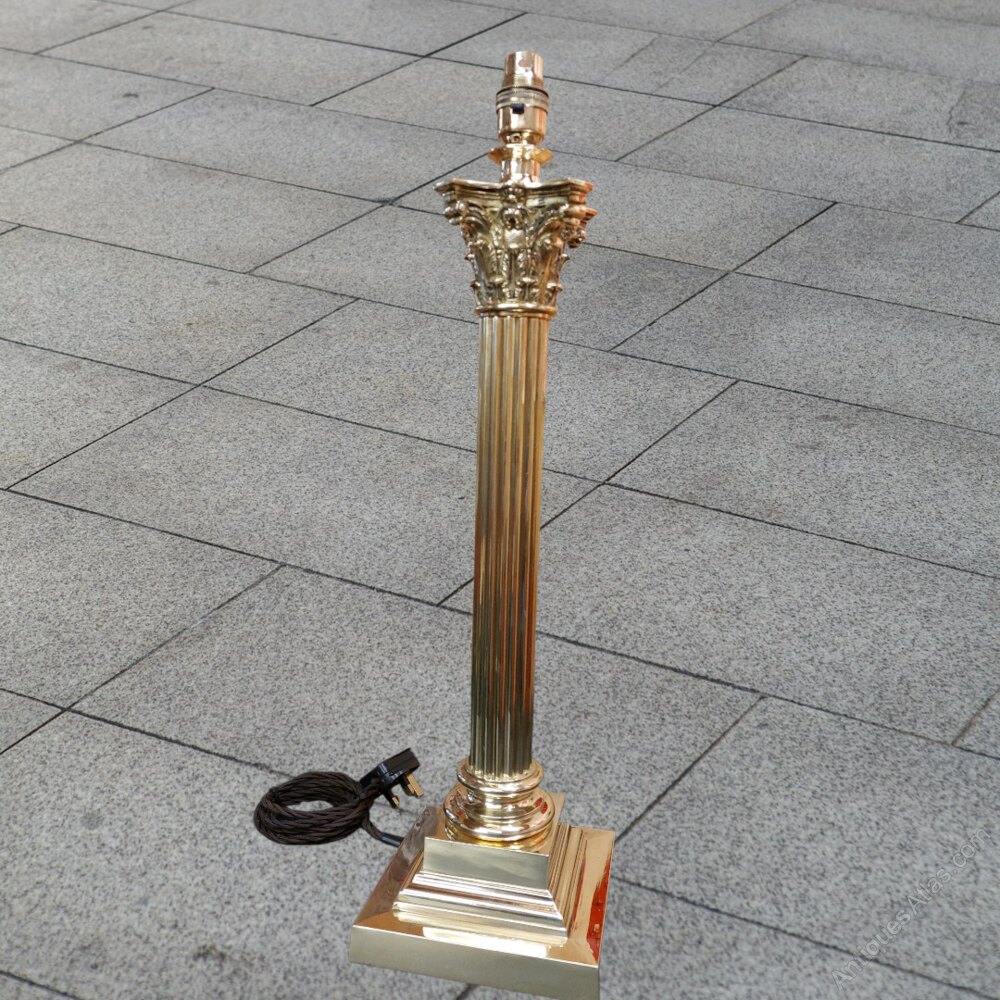 A fully restored substantial English Edwardian Table Lamp of the best quality. Presented in immaculate condition having been polished to a deep sheen and fully rewired with traditional style flex ready for use. Top quality. Standing 22" tall on a 6 1/4" square stepped and weighted base. Baize lined underneath.