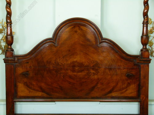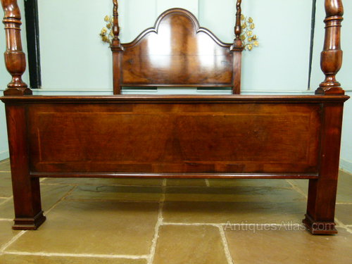 This very striking bed is in a very imposing design. Made of mahogany, having a lovely domed shaped headboard, with quarter panel mahogany veneering having a wonderful feather-banded frieze, showing the excellent quality of the bed. The mahogany has beautiful figuring and is a deep, warm rich colour.
