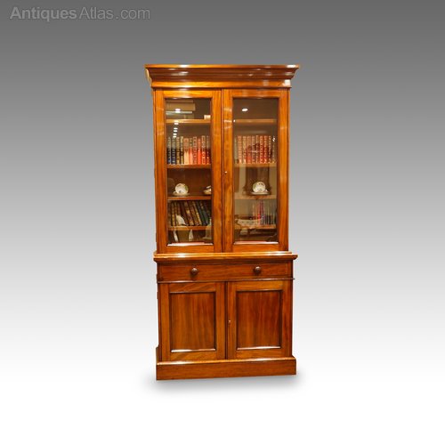 Antique Mahogany Astral Glazed Inlaid Bookcase