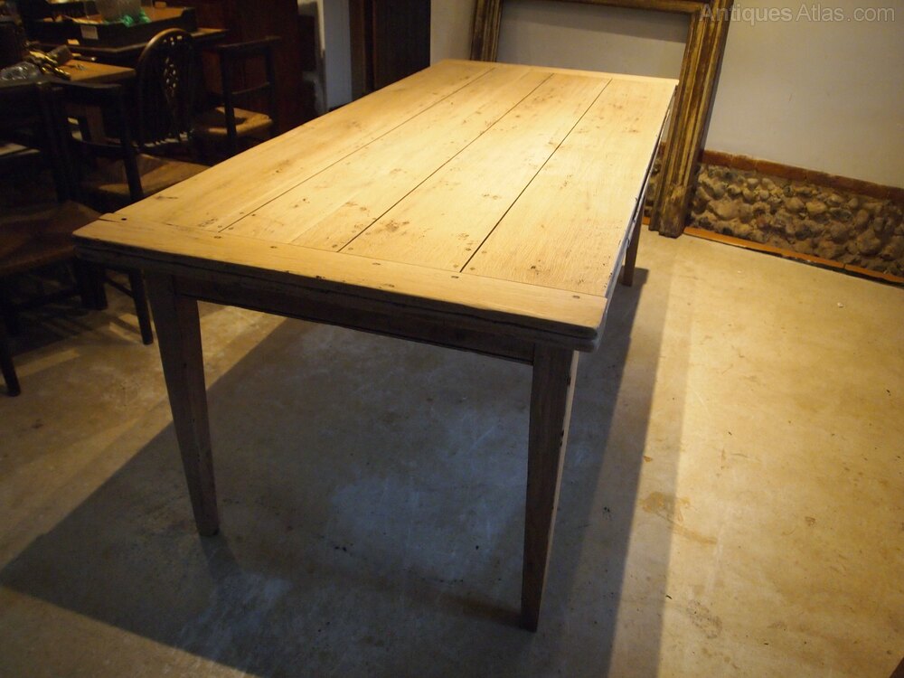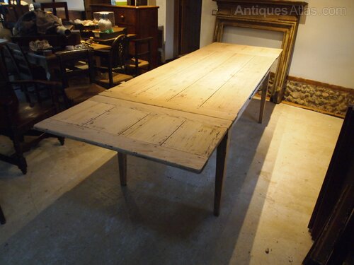 Here we have a rare French Oak extending refectory dining table c1900. As you can see the table has a lovely washed colour showing the natural Oak. The table extends very simply to 300 cm long and 200 without the extensions. However you can have one extension out giving 250 cm. There is a thick plank top with cleated ends on the extension as well as the normal top. The legs are squared and tapered and the table will seat 8, 10 or 12 depending on the extension configuration. The table has a natural finish as it was stained and my restorer has stripped it bringing out the beautiful natural finish. Can be used as a scrub top or simply oiled at no extra charge. A super versatile table in excellent retail condition ready for your home. The dimensions are approx 300 cm, 250 cm or 200 cm long 91 cm deep 77 cm high.