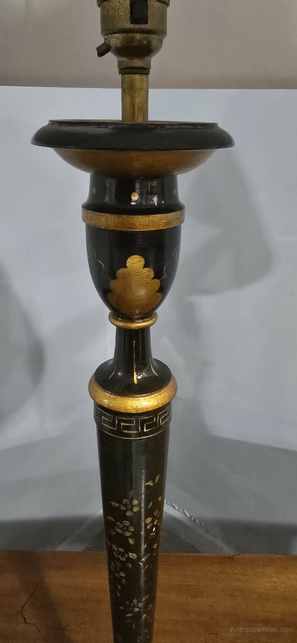 Very nice laquered and gilt tall table lamp, in overall excellent condition, rewired and ready for use.