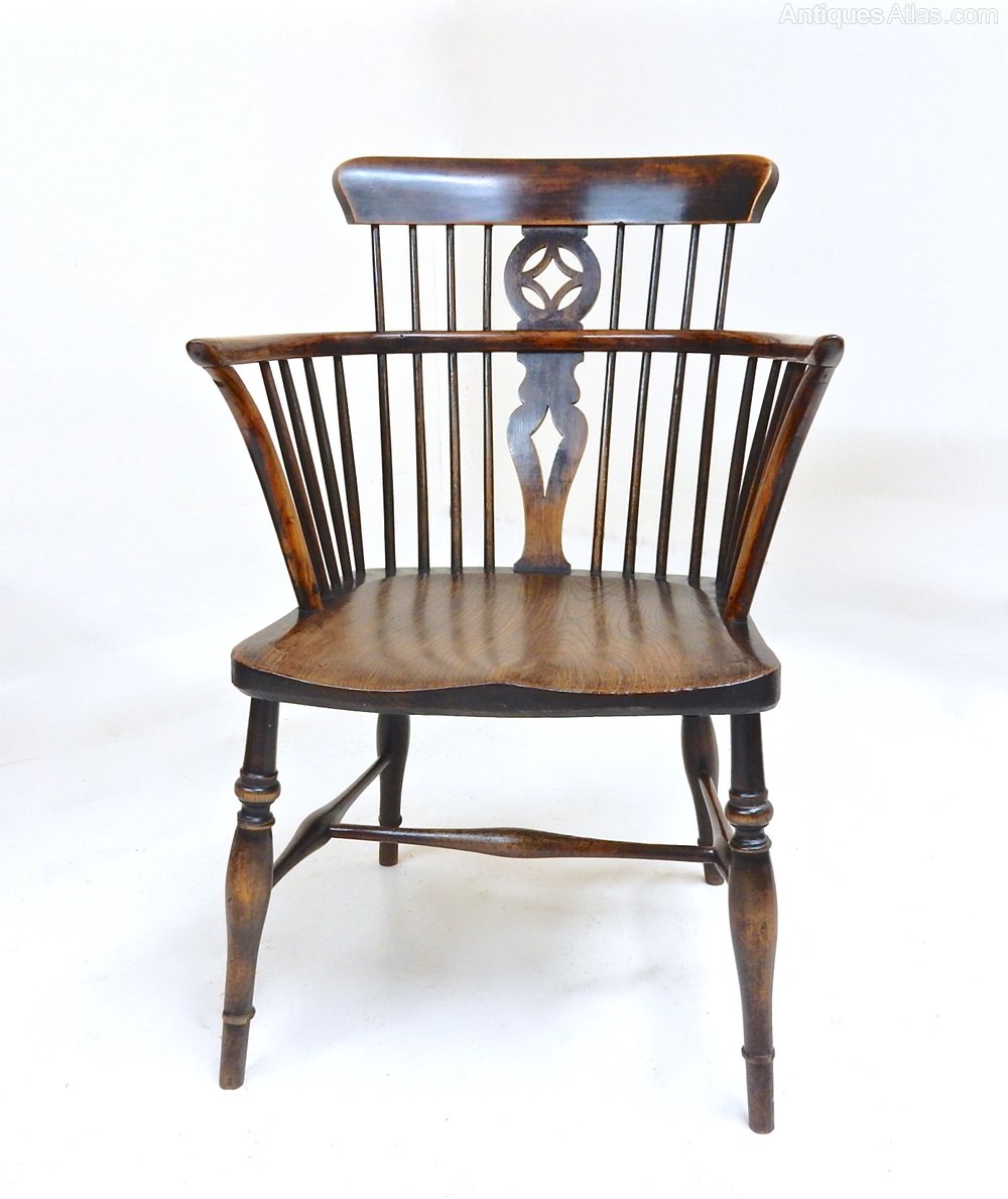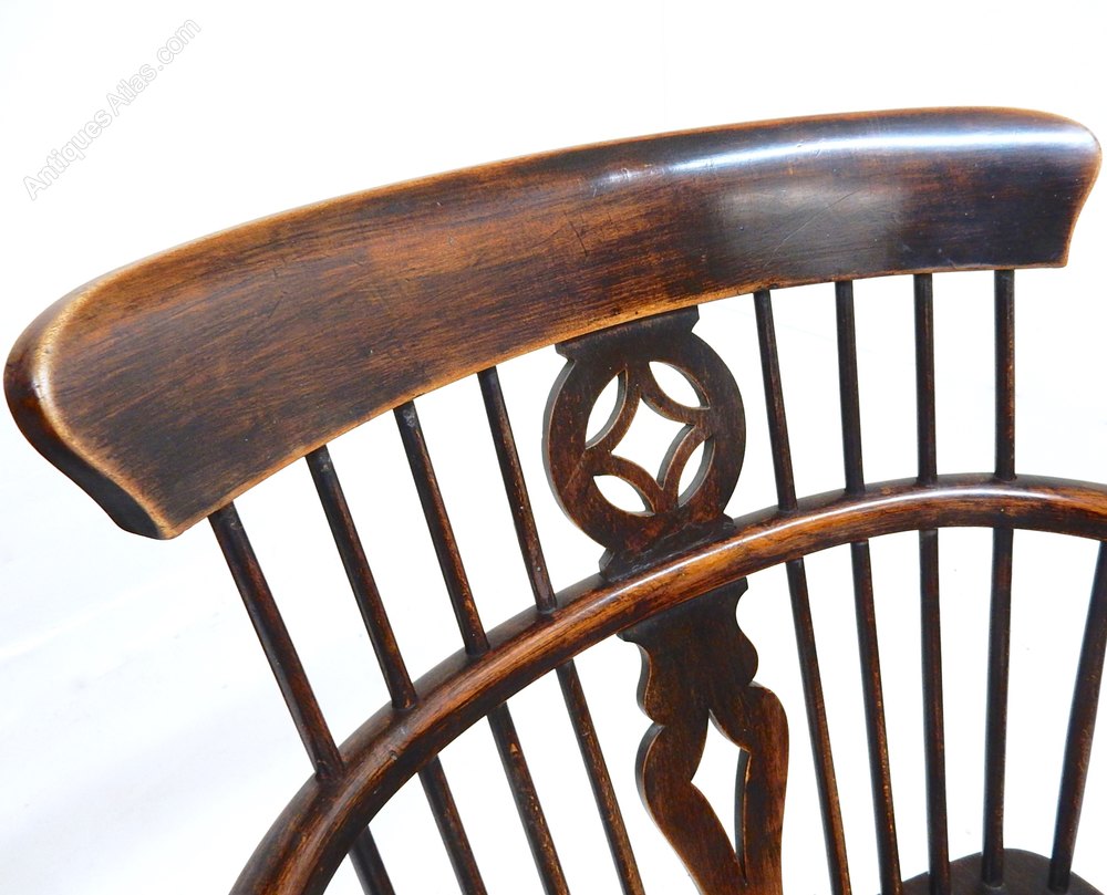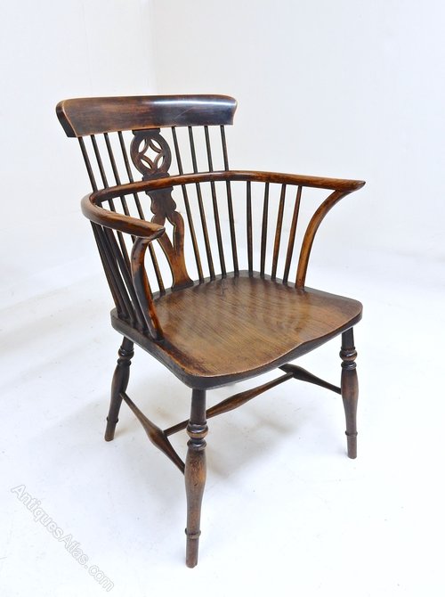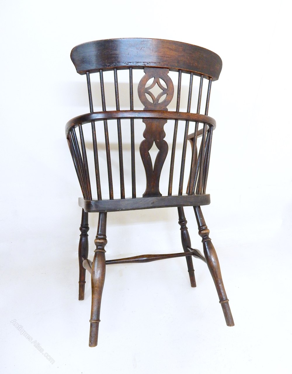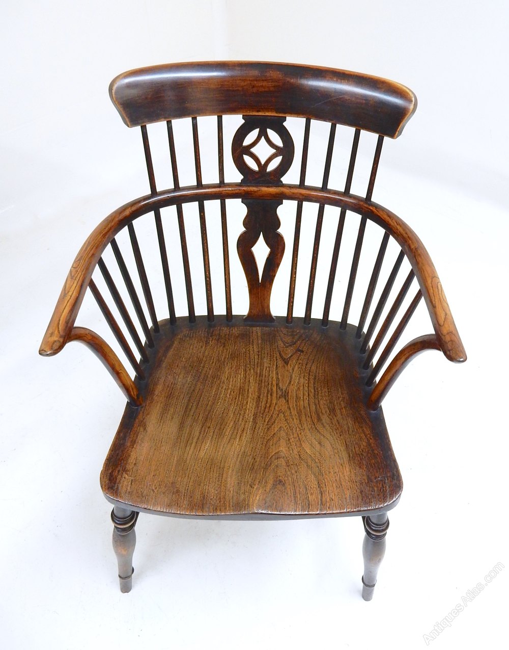 Antique Quality Yew Wood Broad Arm Windsor Chair