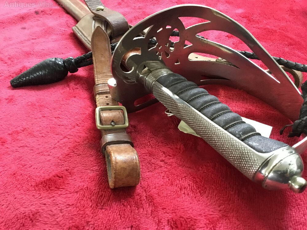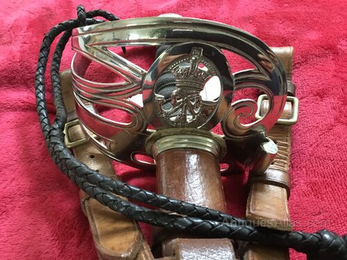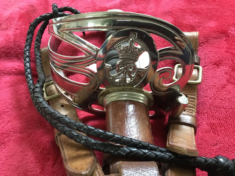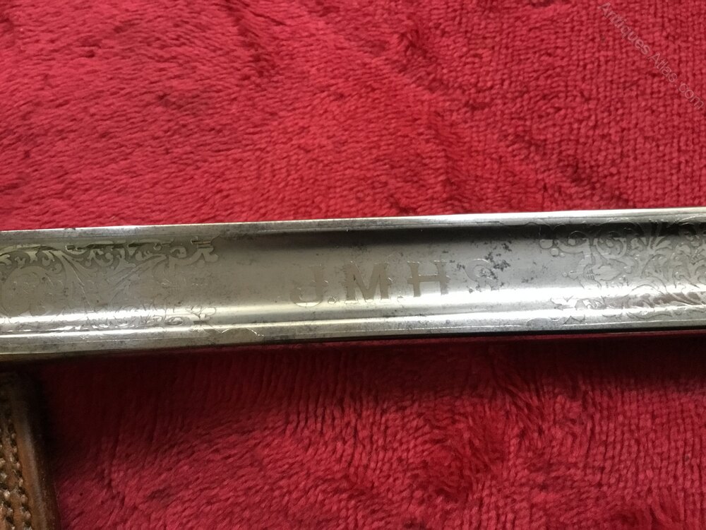 Excellent condition Wilkinson 68103 sword to John Moffat Hewitt Scott , The Cameroonians ( Scottish Rifles ) Sword is in excellent condition with leather covered scabbard , matching frog and sword knot ,