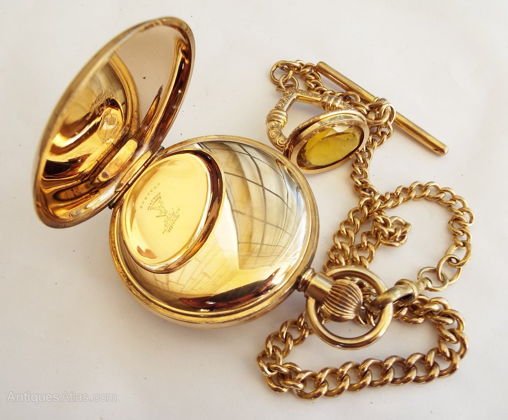 An antique Thomas Russell half hunter pocket watch with chain and fob.