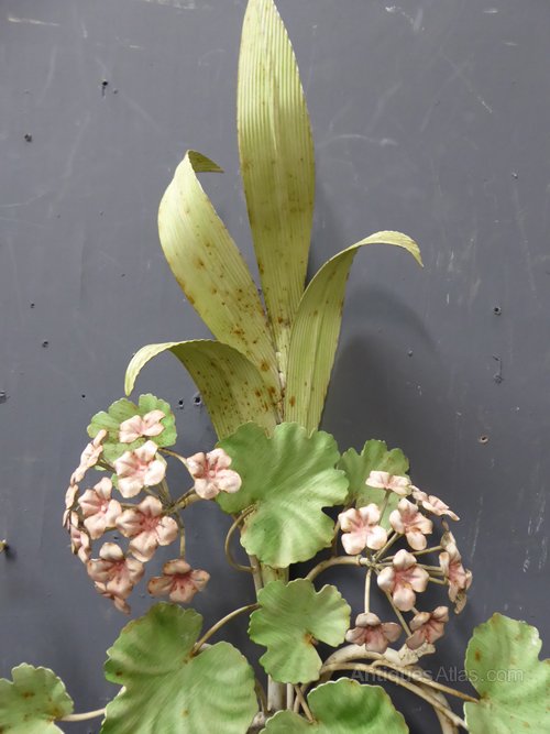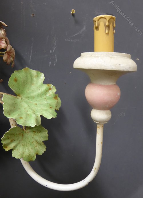 Ref 6762 - Pair of large vintage French two arm wall lights finished in original white, pastel pink and green paint. Original wiring (needs checking). Circa 1970.