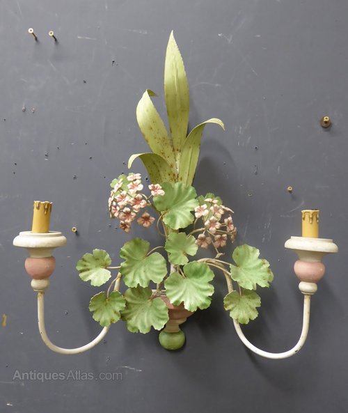 English Pair Of Twin Arm Antique Wall Lights