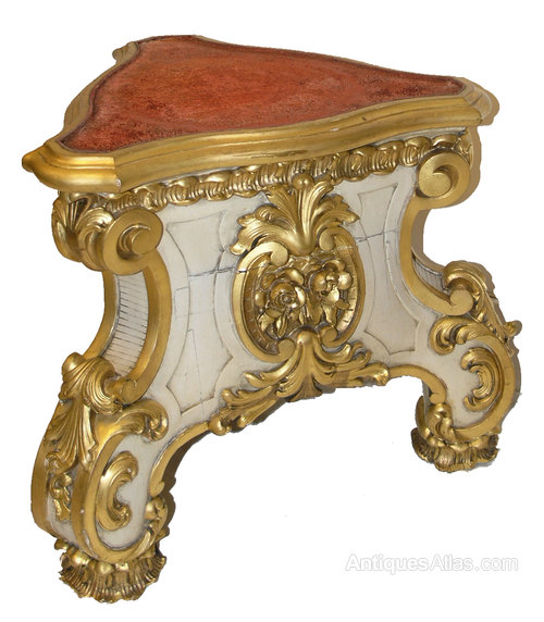 Unusual shape mid 19th century French painted and gilded stand. Great shape with lovely mouldings and carvings all in wood. The decoration is all original. Retains its original castors to the base.