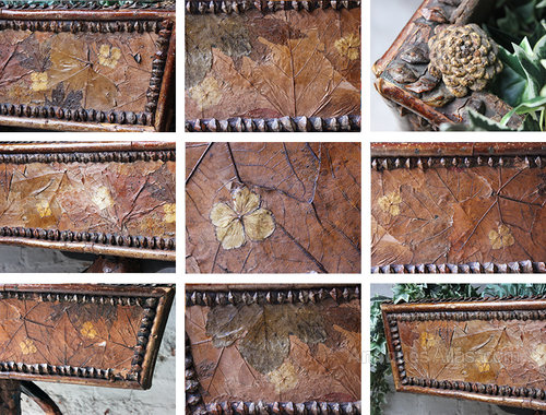 Flower and plant collecting was popular in the mid-Victorian period especially with albums containing botanical specimens from flowers to seaweed and algae specimens. Furniture is far far less commonly found decoupage decorated with botanical specimens and we can’t find another piece like this anywhere having been sold.