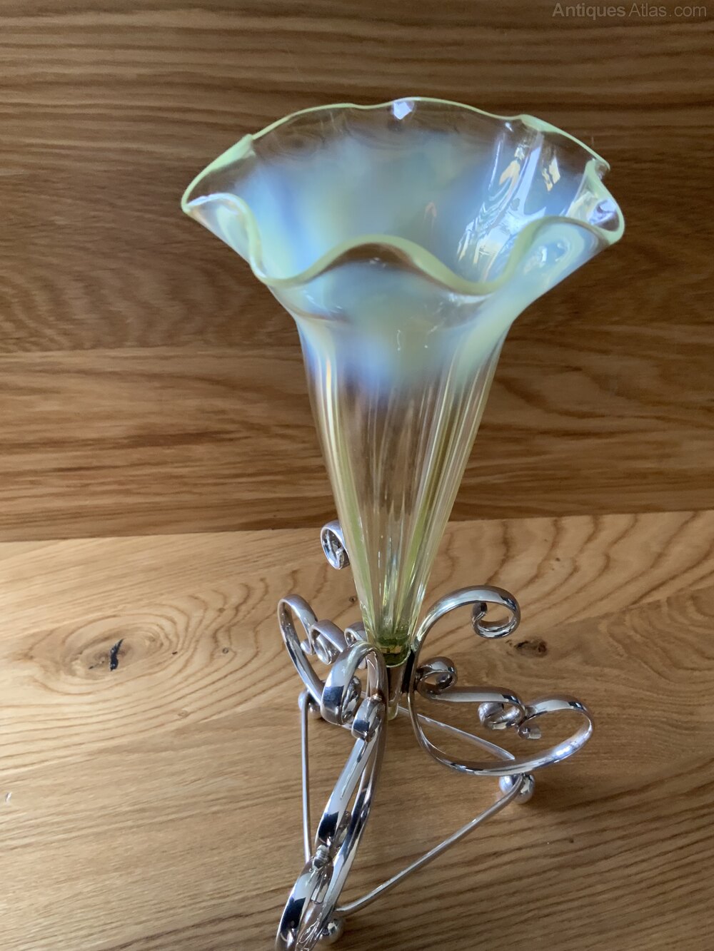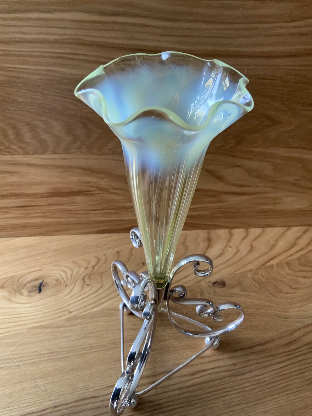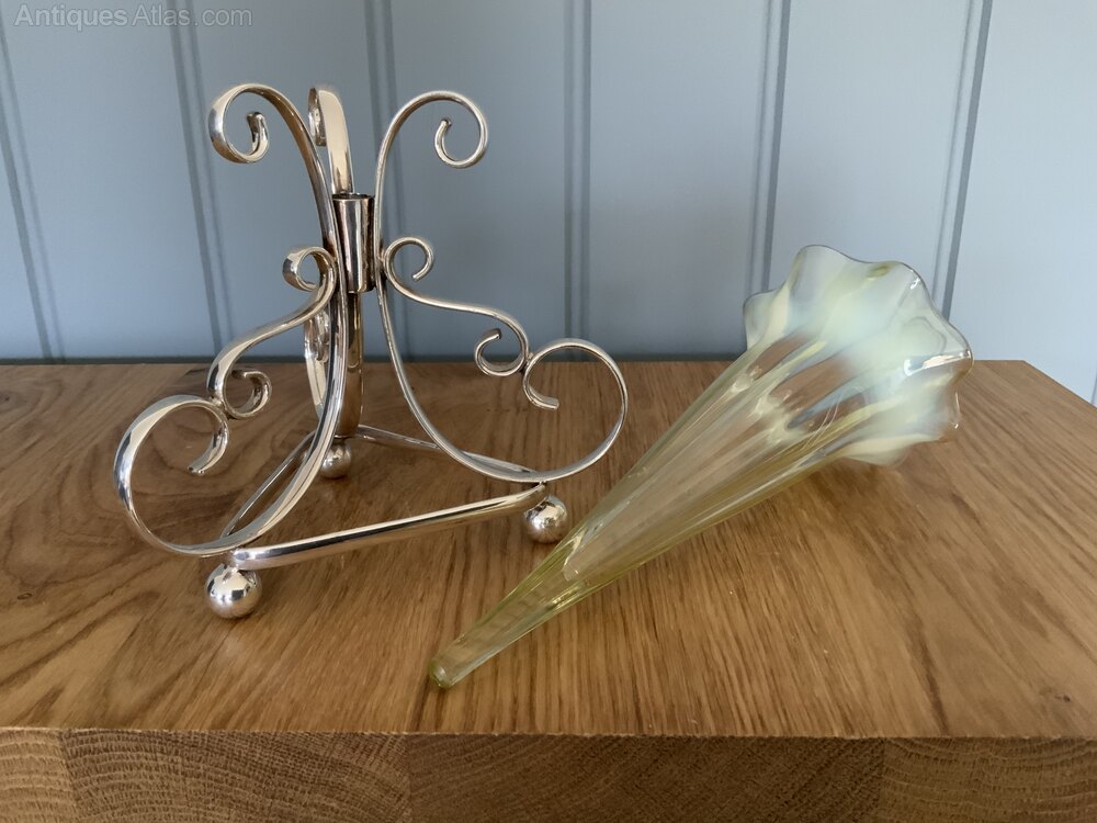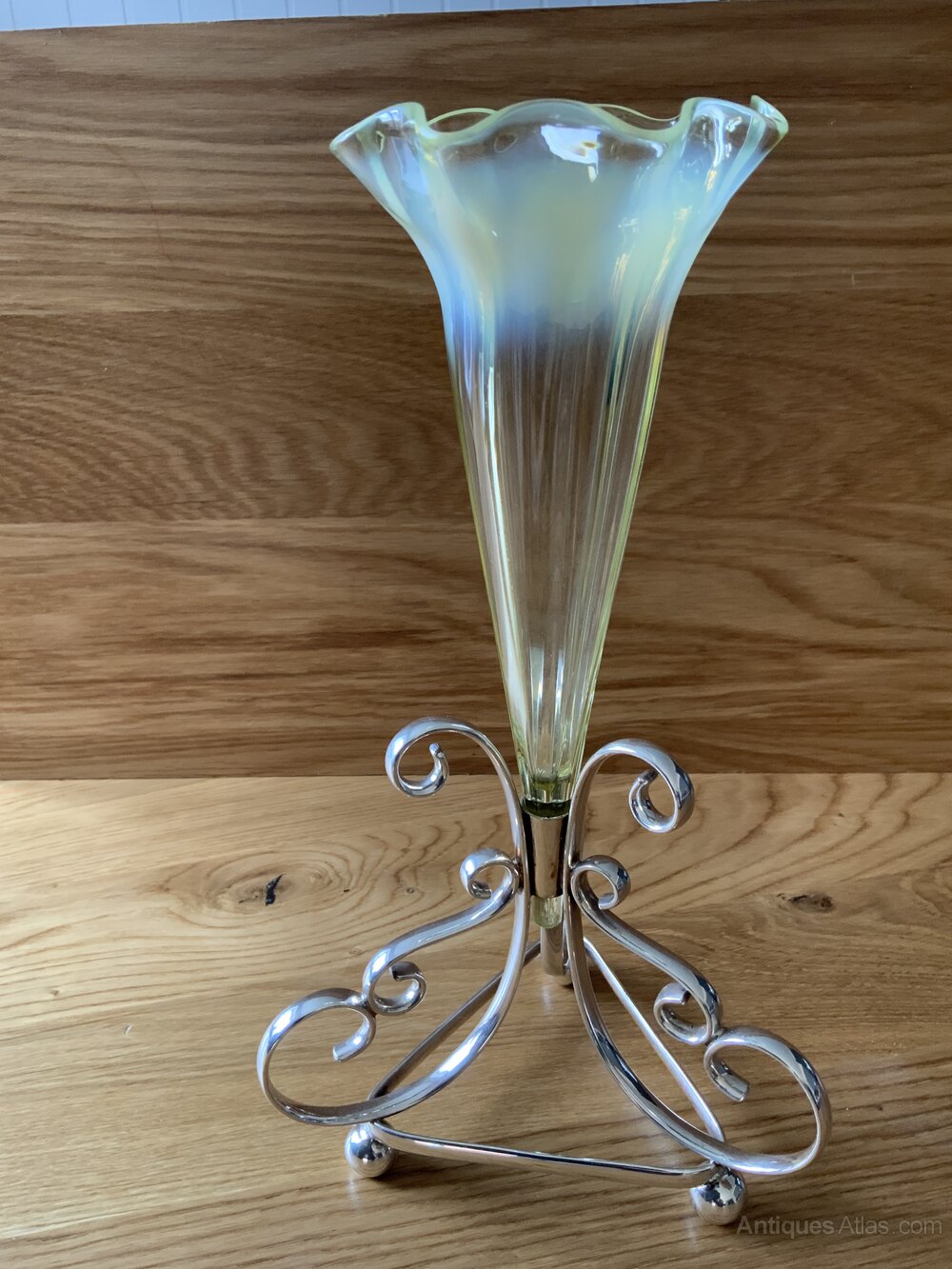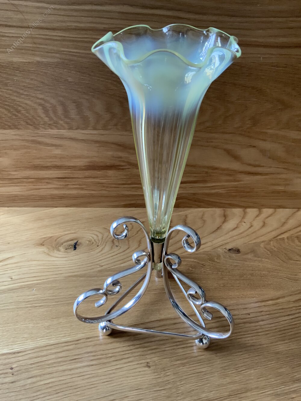 Victorian Vaseline Glass Epergne with Silver Plated Stand