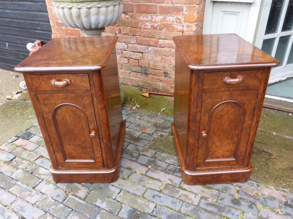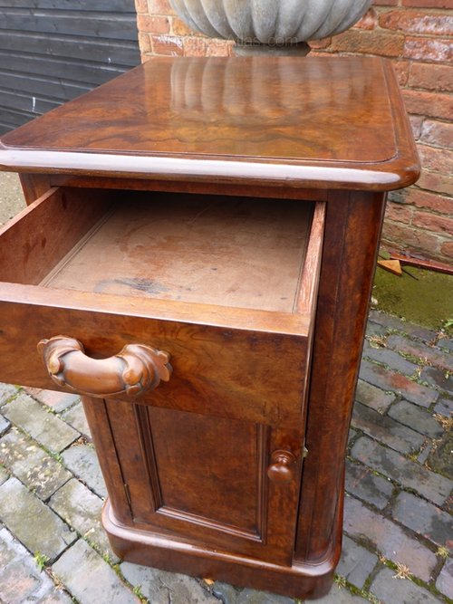 A Super pair of Victorian bedside cabinet in Burr Walnut, in excellent condition.