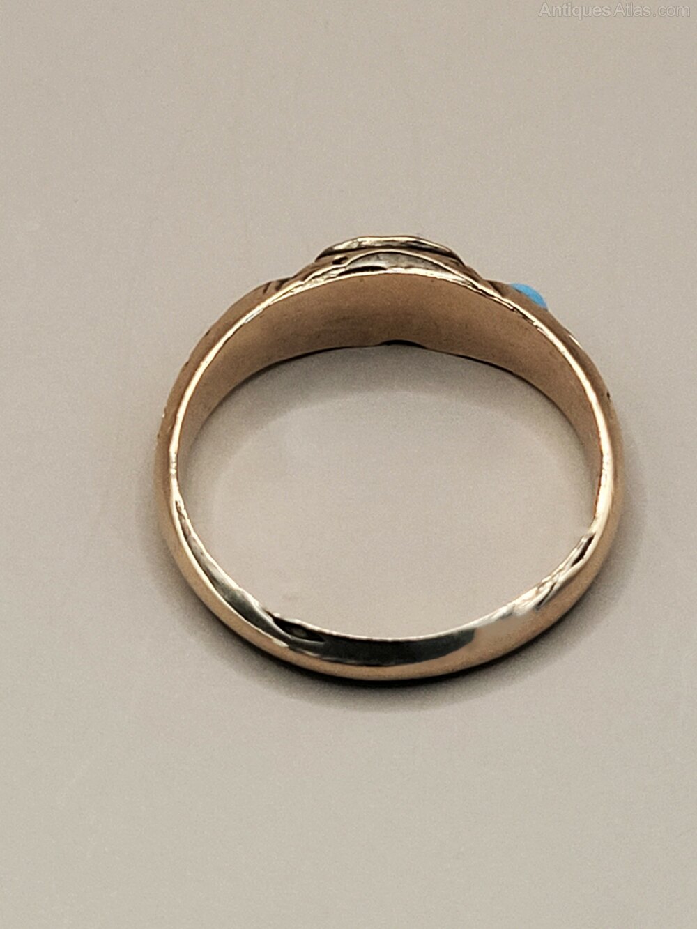 Victorian 9ct Gold Turquoise & Garnet Ring. Size L.