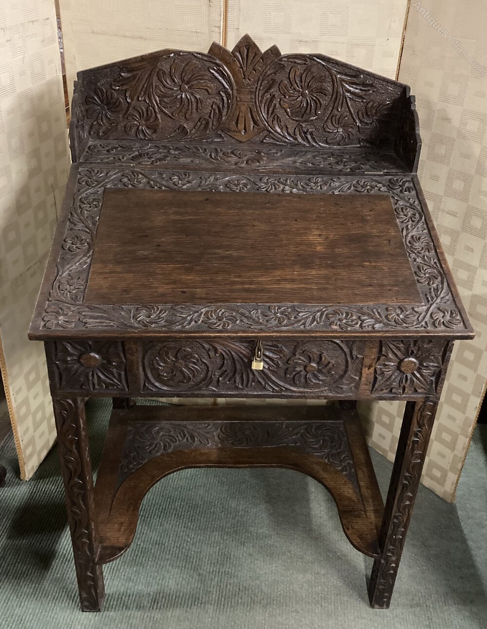 no-132-Victorian oak carved Bible box / Clerks desk in good condition