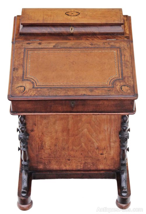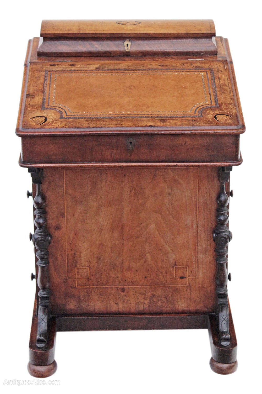Antique Victorian inlaid burr walnut davenport writing table desk.