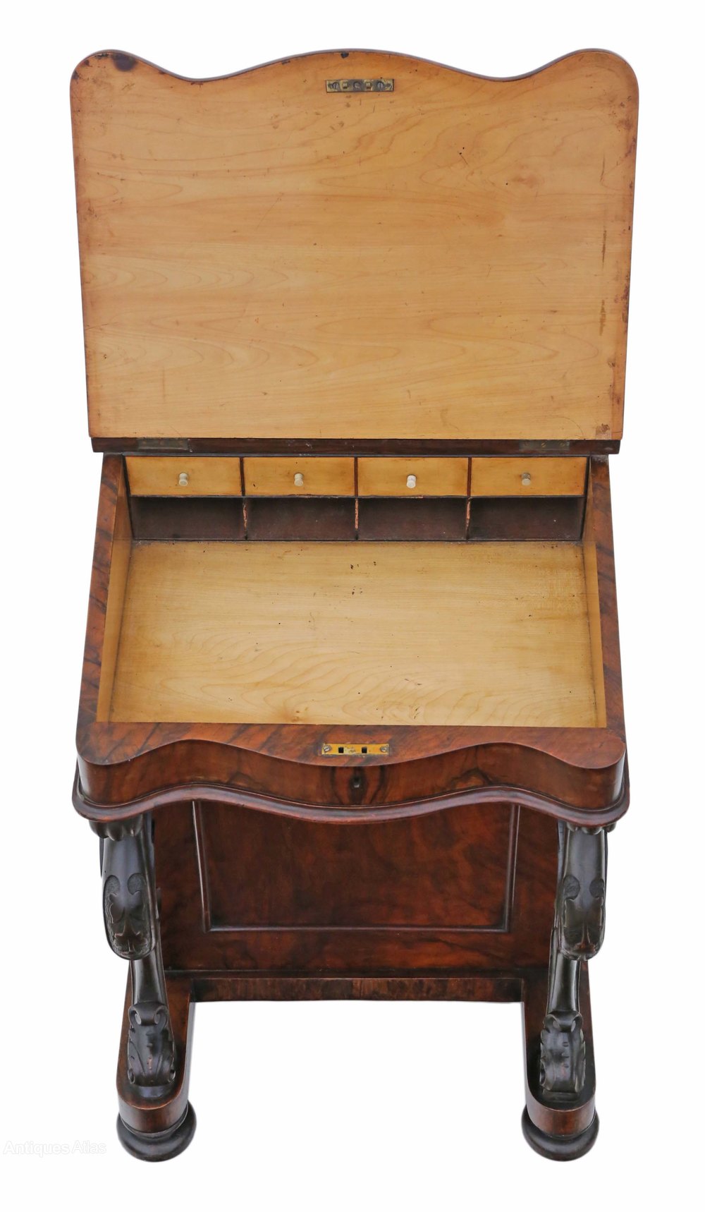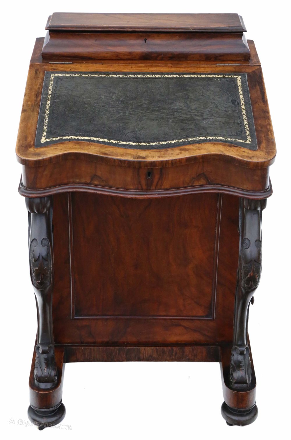 Antique quality Victorian C1880 figured walnut davenport writing table desk.
