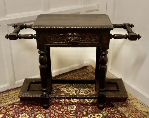Victorian Carved Gothic Oak Hall Table Stick Stand