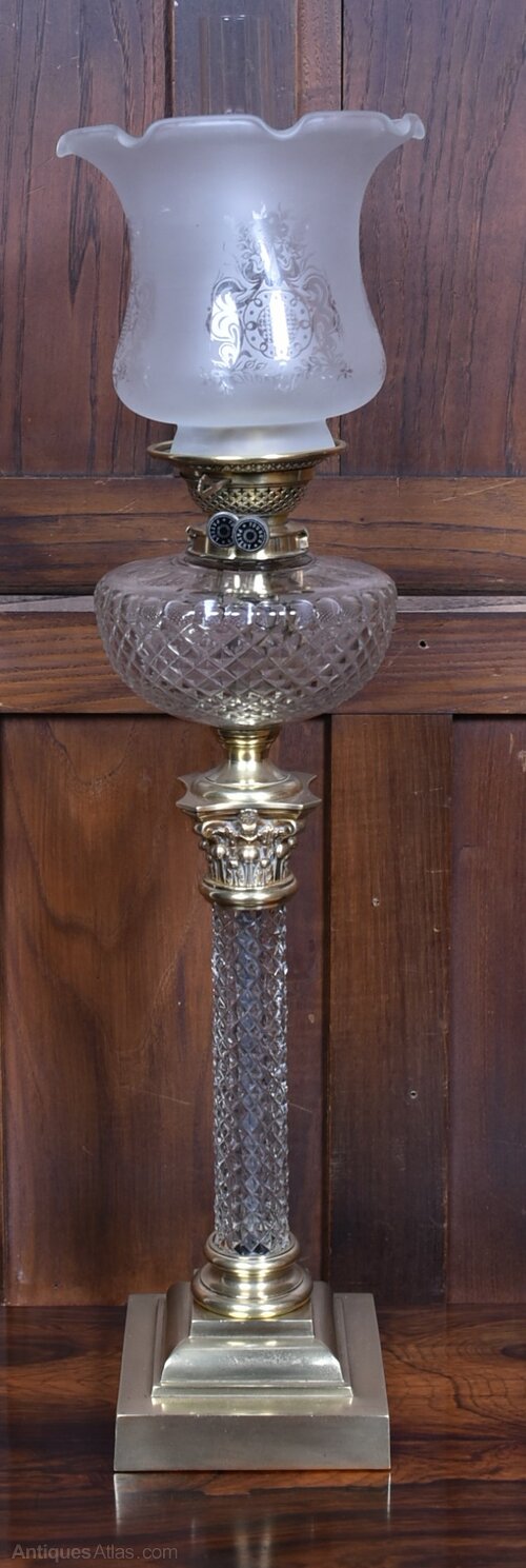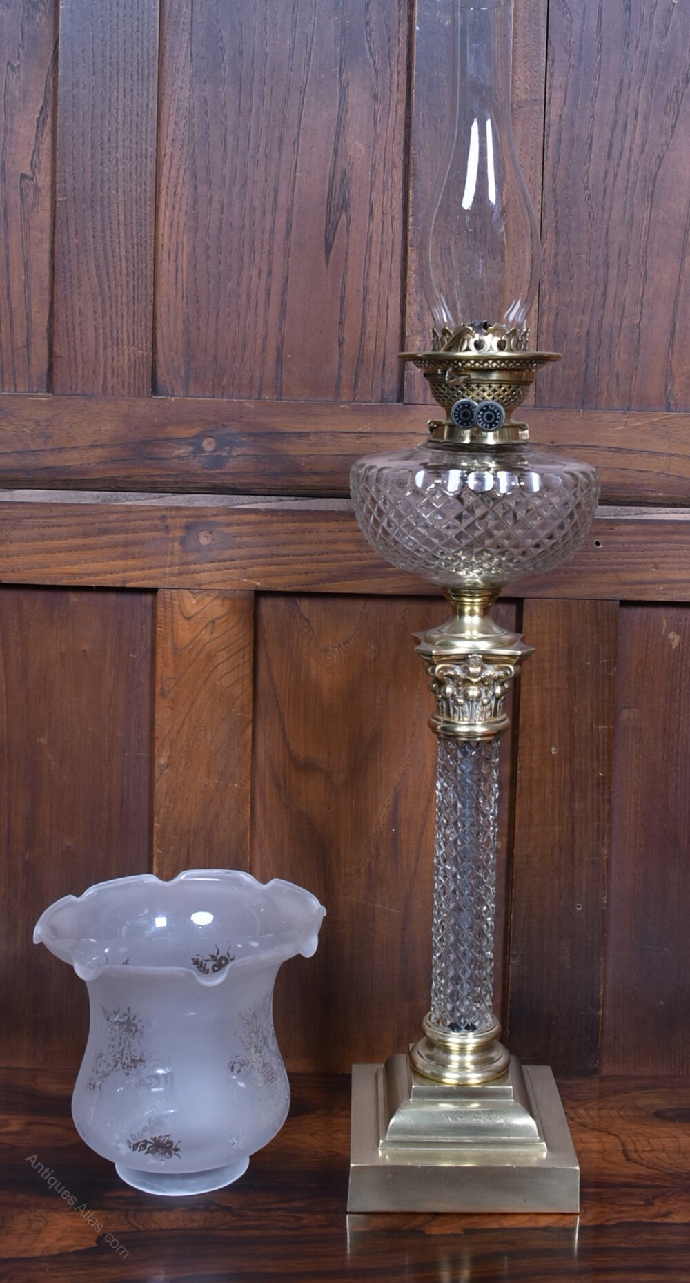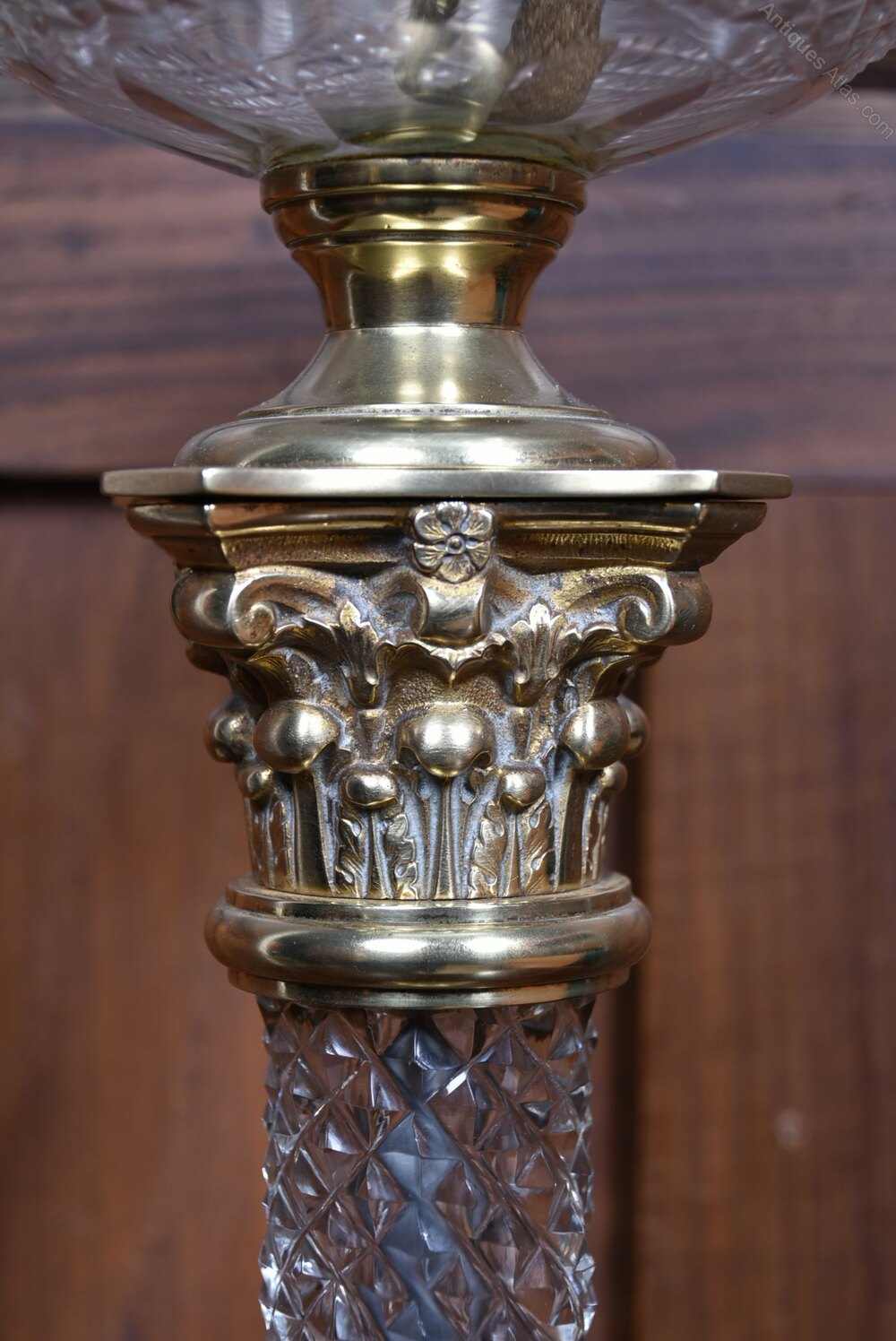 Late 19thC Brass Oil Lamp with Corinthian Column