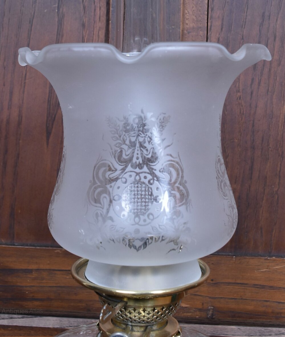 A fine Victorian oil/paraffin lamp distinguished by twin adjusters stamped “Young’s Special” , a mark of quality and provenance. Its embossed frosted glass tulip shade lends a gentle elegance, paired with a clear funnel and crystal reservoir, both in excellent condition. A single crystal column rises gracefully from a stepped brass base, completing the composition with classical poise. Fully functional and beautifully preserved, this lamp embodies the craftsmanship of 19th-century design. It offers both atmospheric illumination and timeless character , a perfect accent for traditional or eclectic interiors alike.