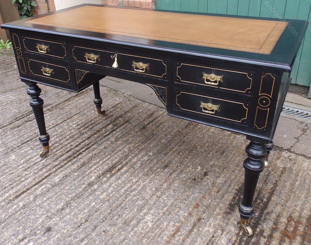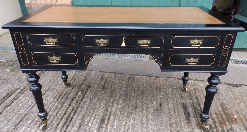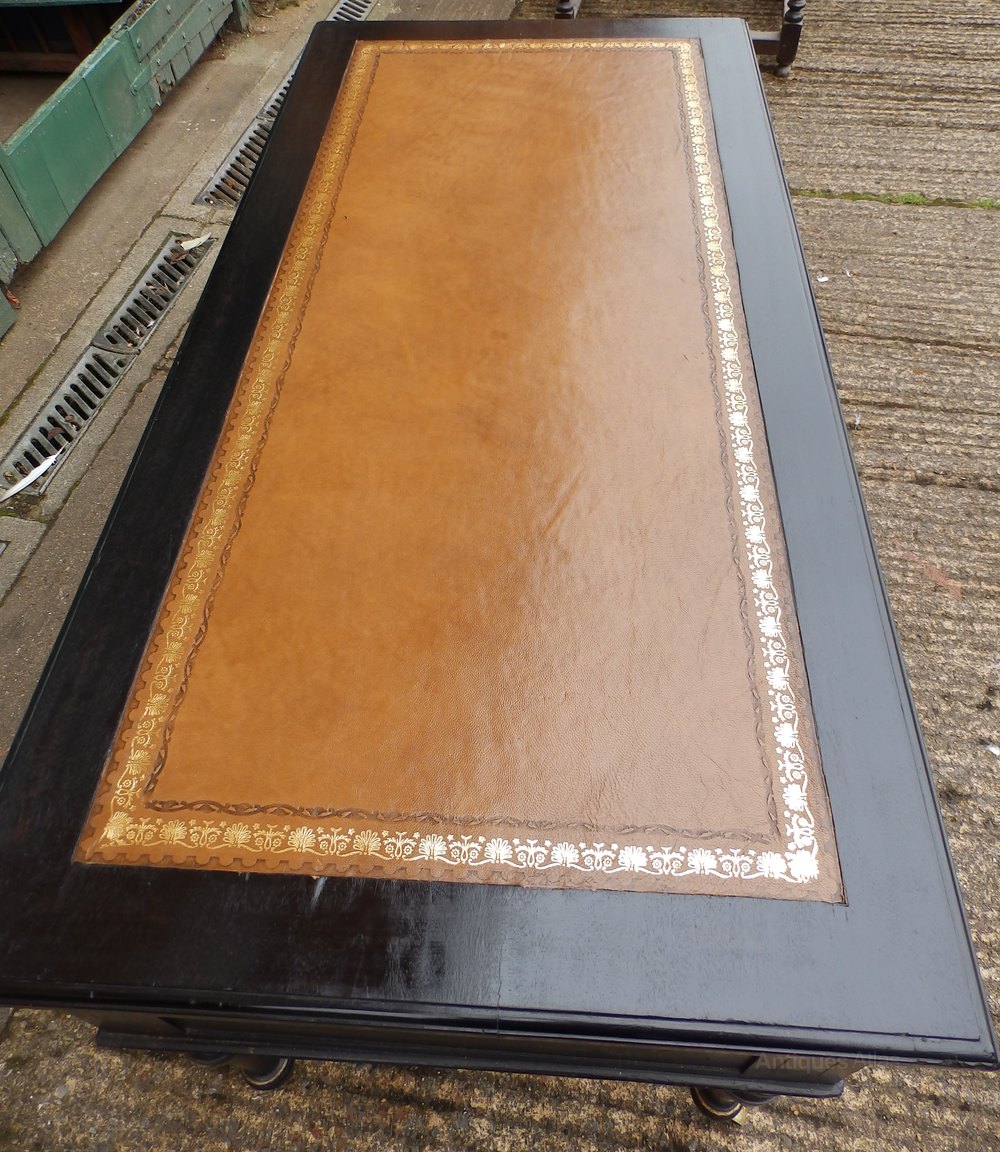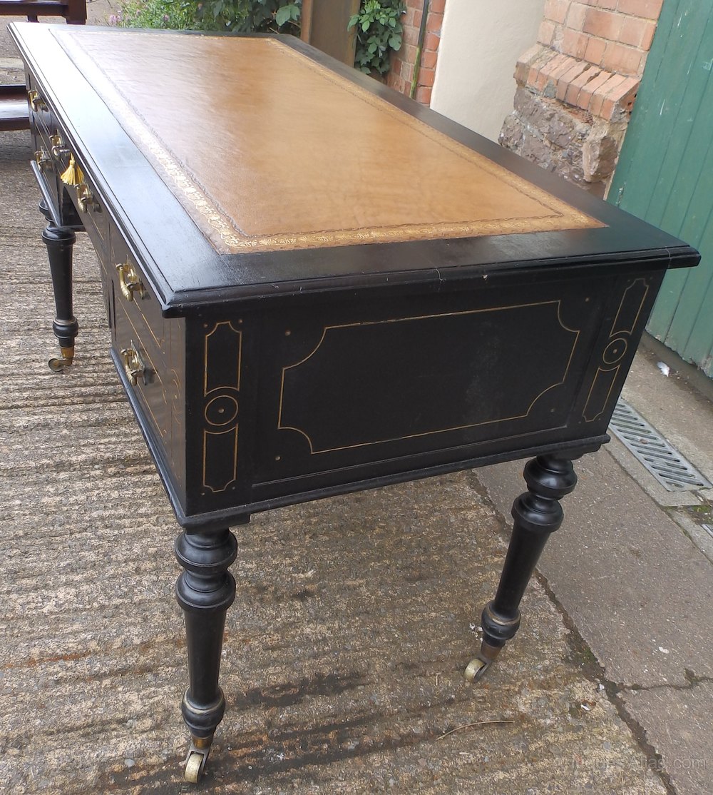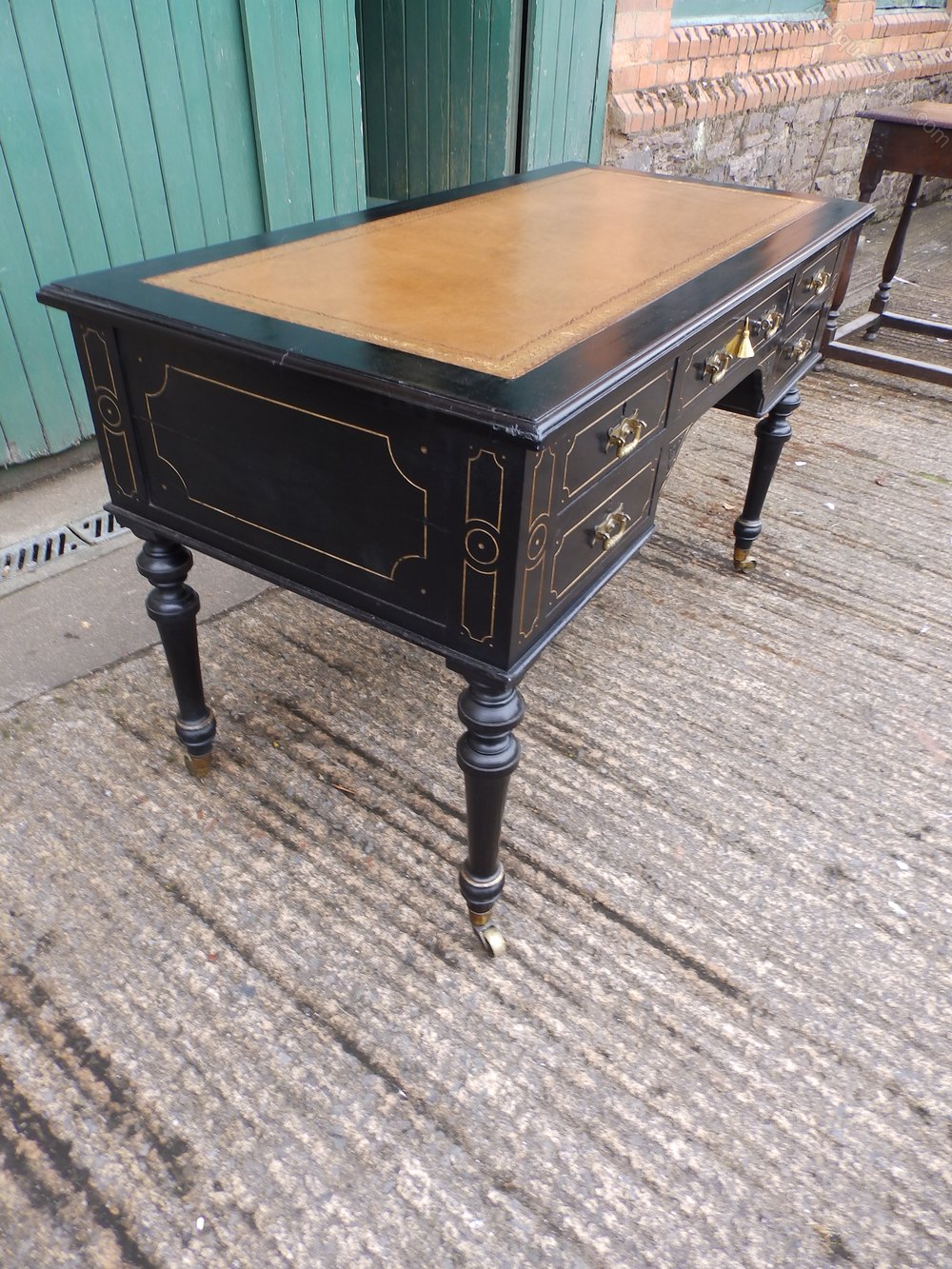 NO-16-1870 Victorian Ebonized & painted desk made by maple&co with new leather insert in good condition