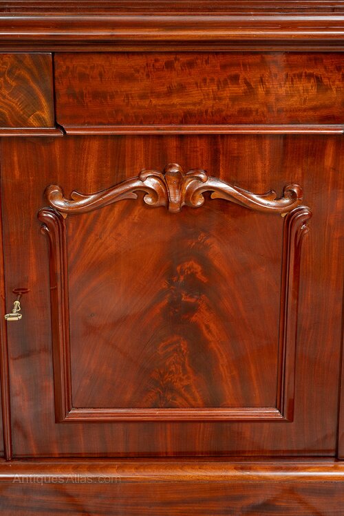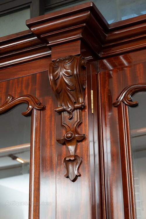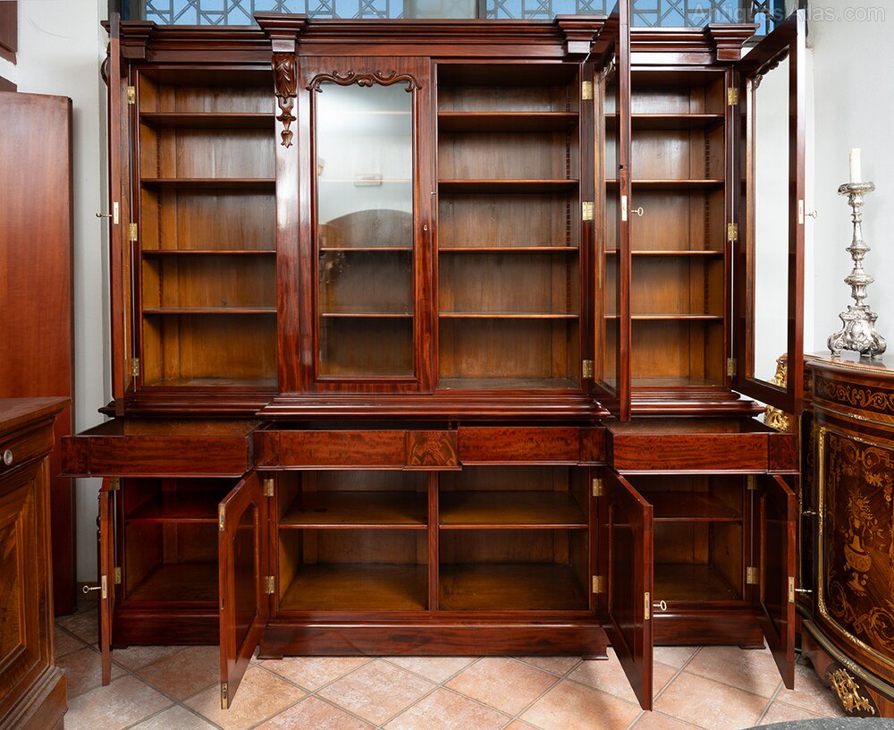 Description: Antique Victorian four-door mahogany bookcase from the first half of the 19th century.