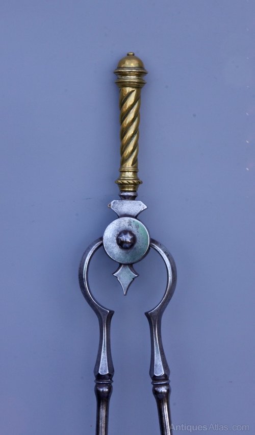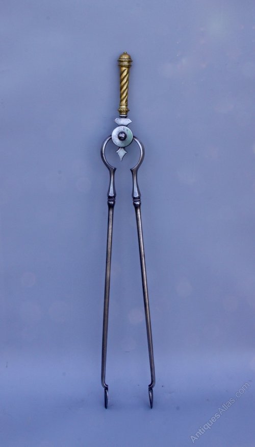 Victorian Gothic Steel Brass Fire Tongs circa 1870