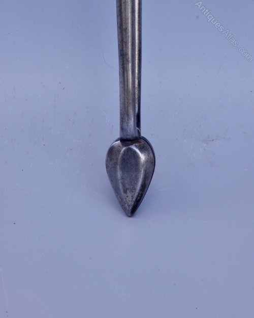 A wonderful quality pair of Victorian Gothic Revival fire tongs, dating to circa 1870. They are very well detailed with spiral twist handle, spade form ends, are heavy and strongly made. Please note the handle is kinked in the photos as the tongs are open and would be straight when closed. They are offered in good condition, commensurate with age, with only slight give at the hinge, and measure 74.5cm in length. The price includes UK postage.