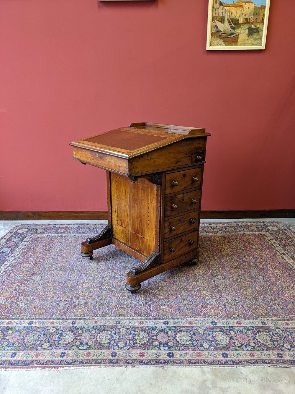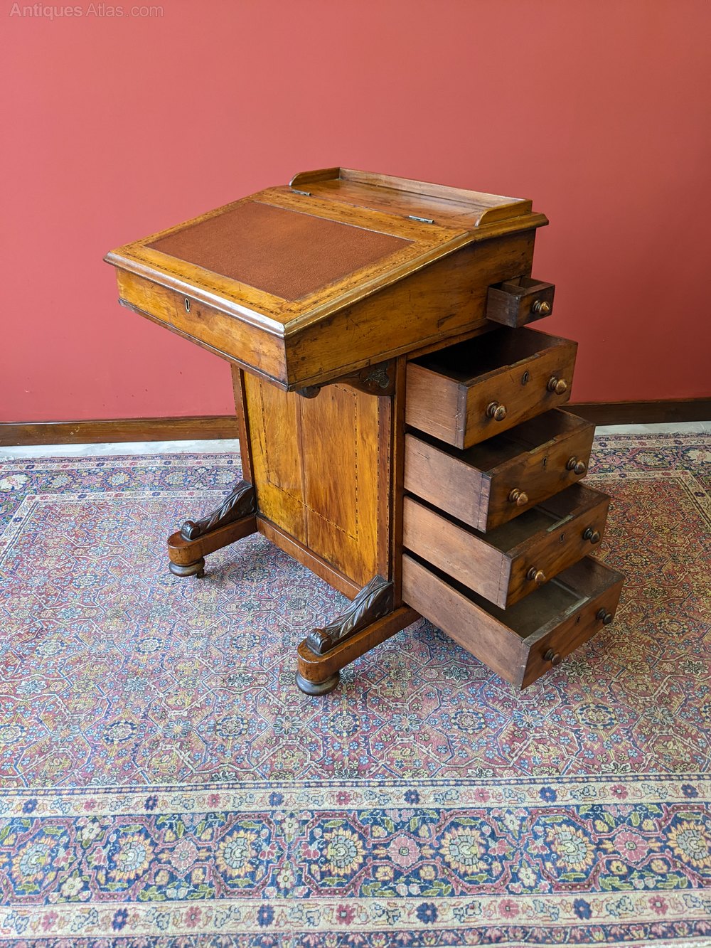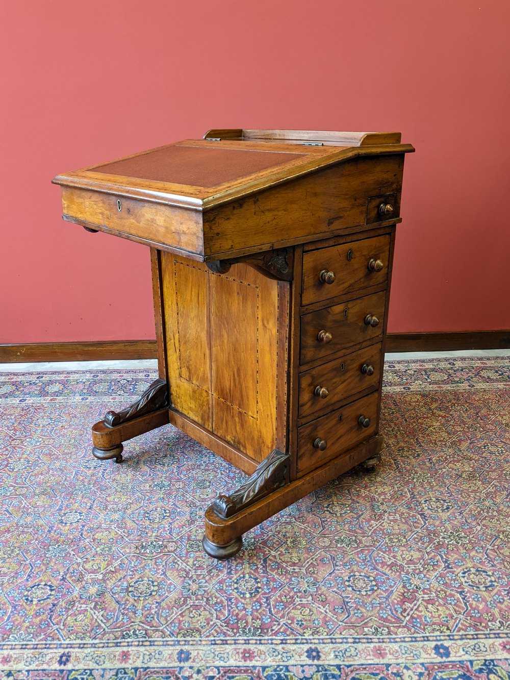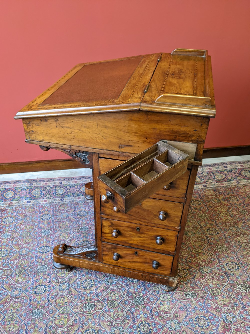 Antique Burr Walnut Inlaid Freestanding Davenport