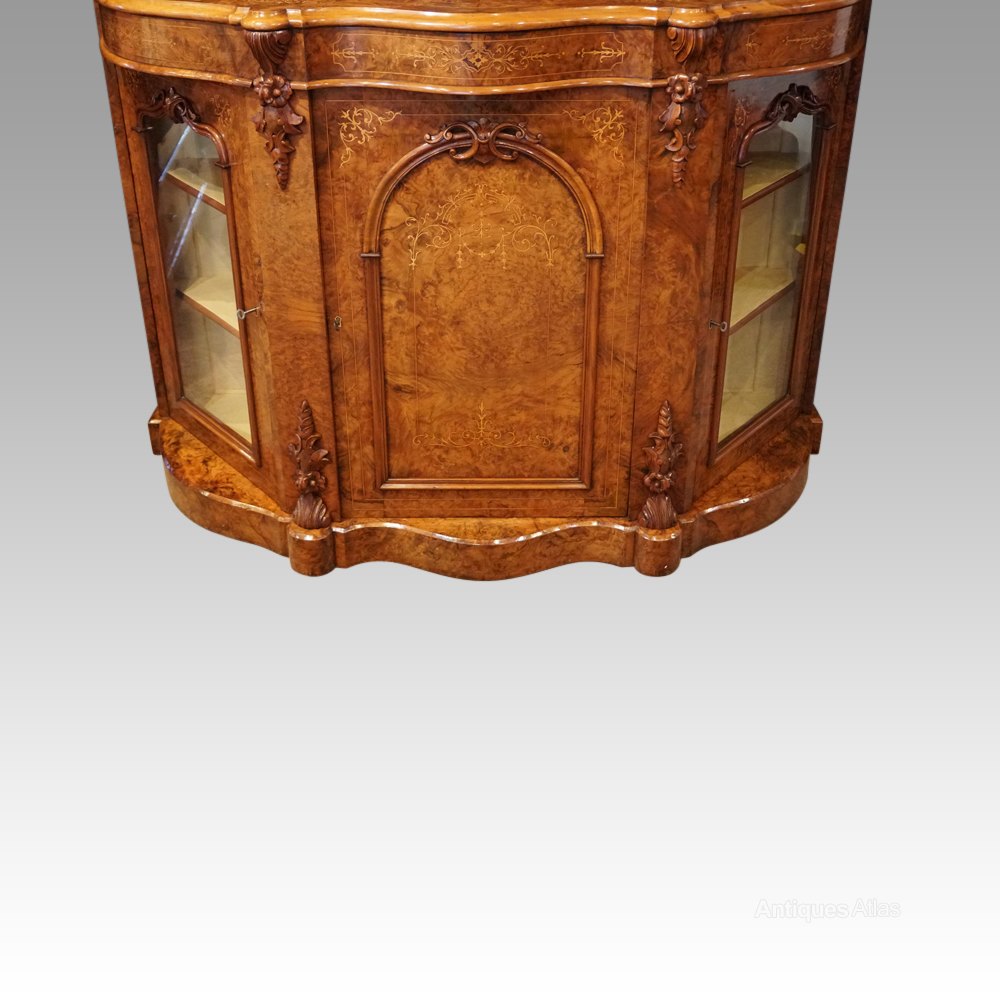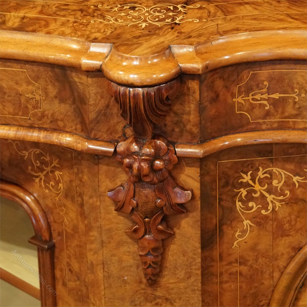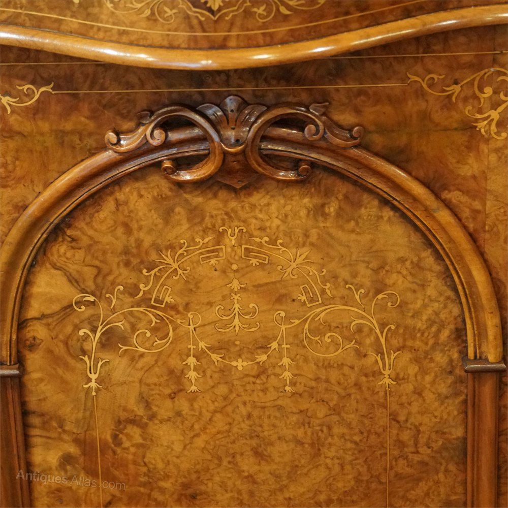 Large Antique Burr Walnut Amboyna Inlaid Credenza
