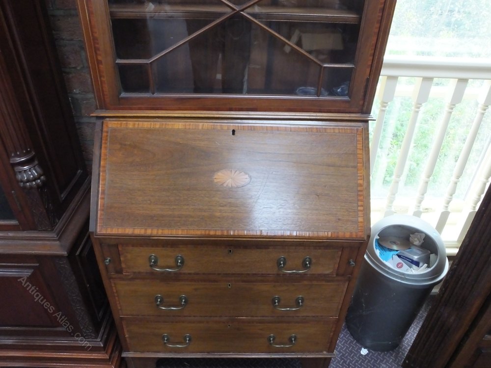 Victorian Mahogany & Satinwood Secretaire Bookcase