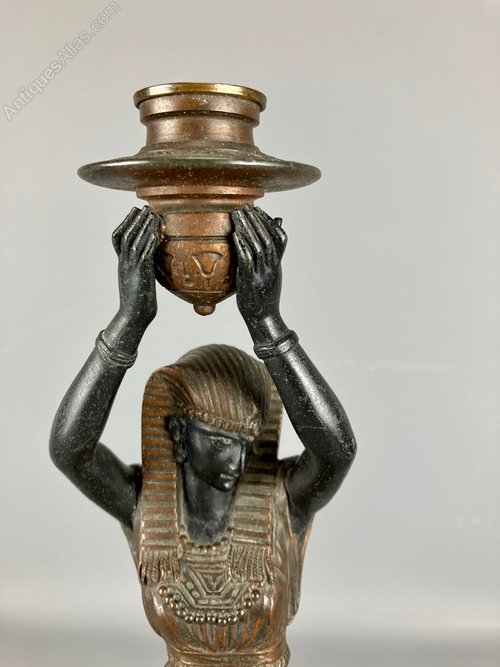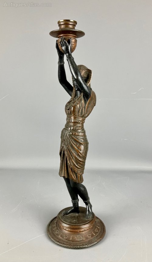Victorian Nubian Girl Egyptian Revival Candelstick