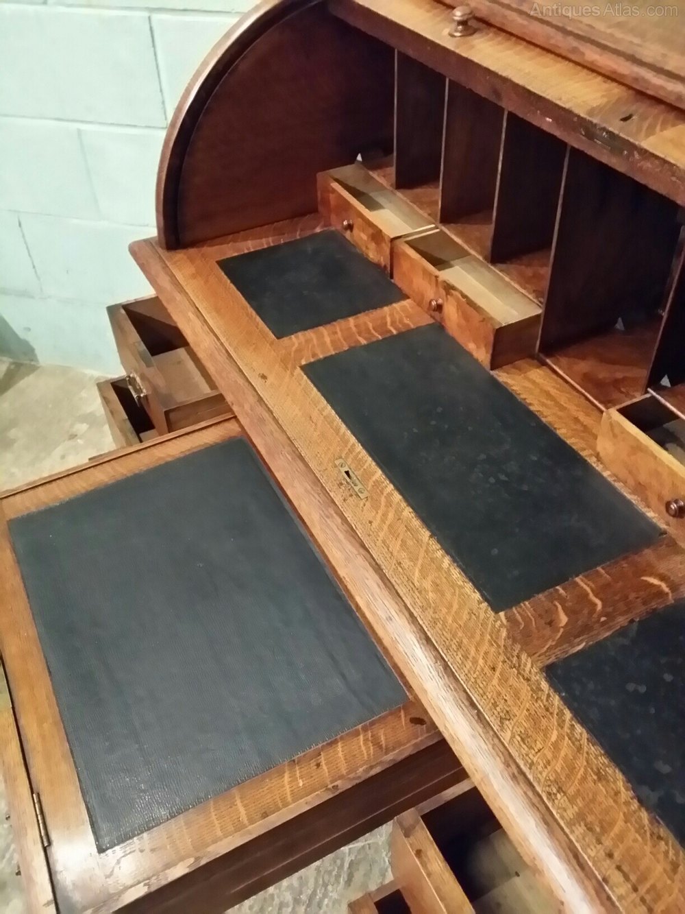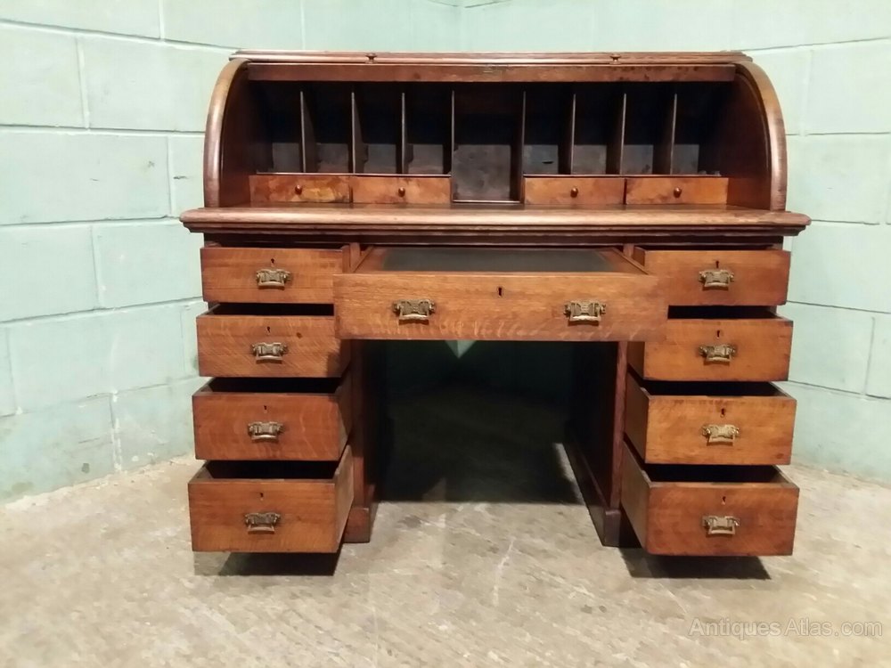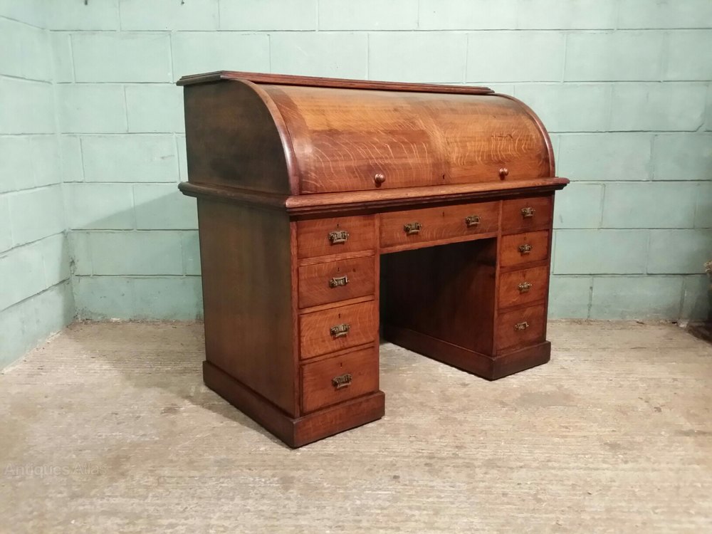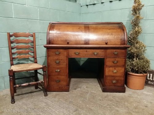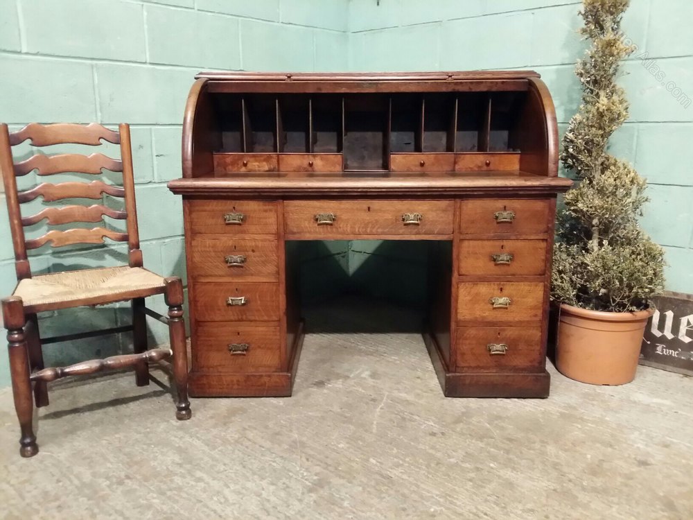 Victorian Oak Cylinder Pedastal Desk c1880