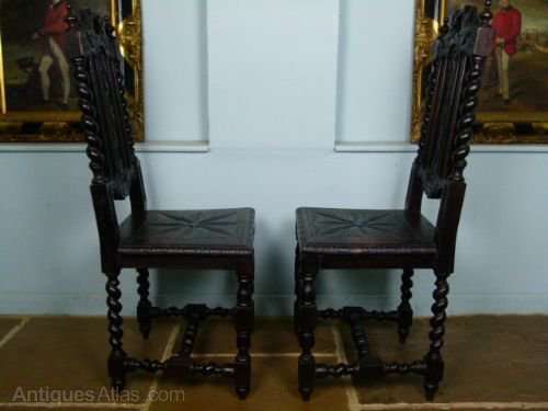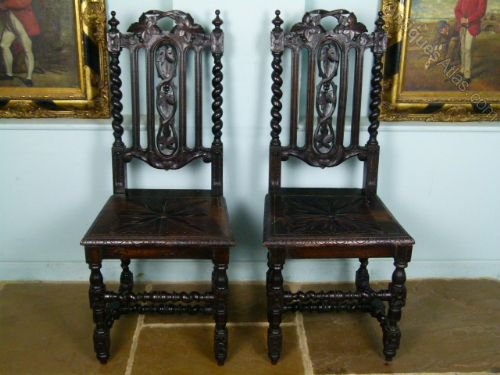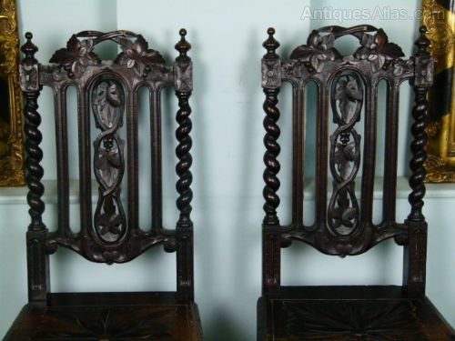 Very pretty carved splats, having fruiting vines, with elegant turned finials and barley twist supports.