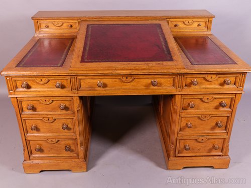 Victorian Pedestal Desk in Golden Oak