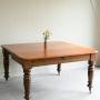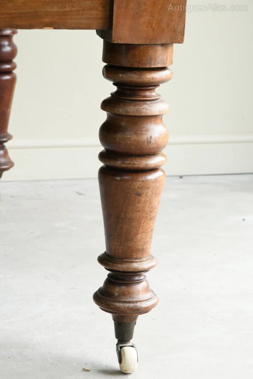 Victorian Pine & Mahogany Extending Dining Table. Antique Victorian extending dining table, solid pine top with wind out mechanism and single extension leaf on mahogany base with turned legs and large castors.