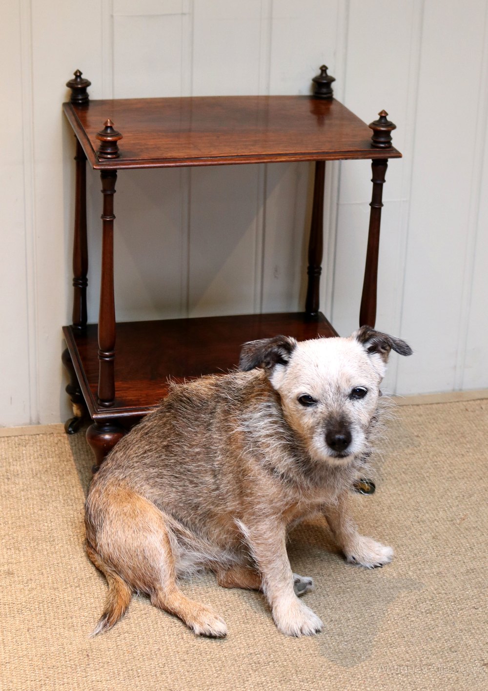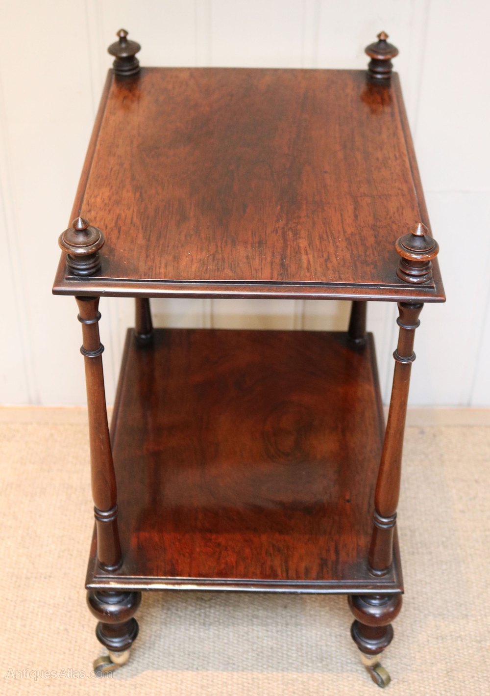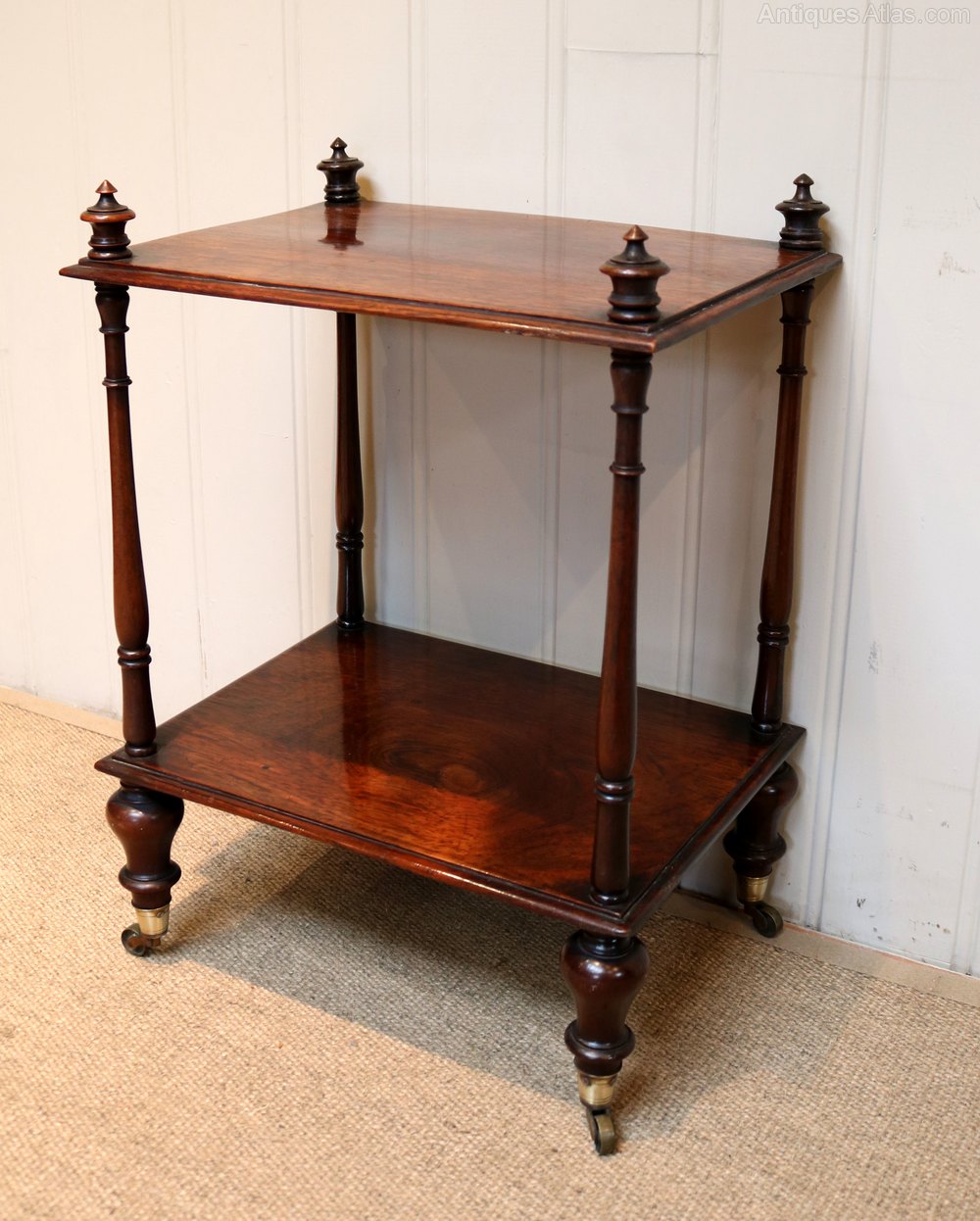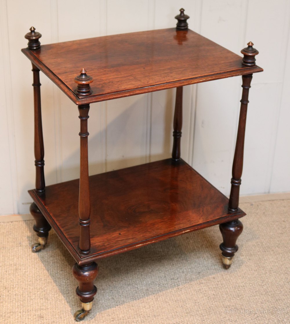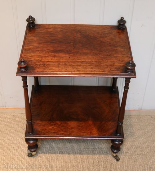 Victorian rosewood whatnot having turned supports and finials ,raised on brass castors